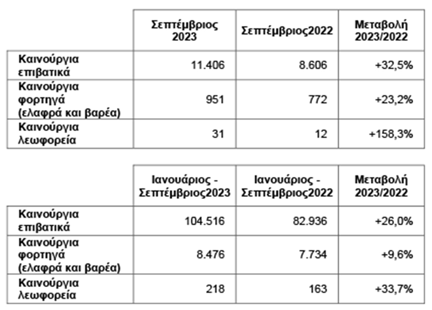 Σε επίπεδο κατηγοριών οχημάτων οι Β και C ξεπερνούν το 80% της συνολικής αγοράς, ενώ η Α σημειώνει μικρή αύξηση (2,2%) στο πρώτο 9μηνο του 2023.