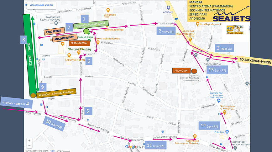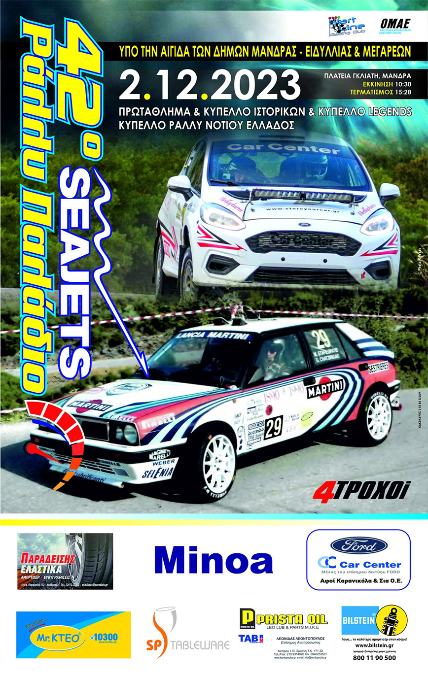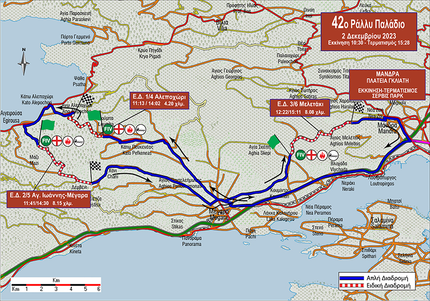 Ο τεχνικός έλεγχος θα γίνει την Παρασκευή 1 Δεκεμβρίου στο Mr KTEO (Πειραιώς 21 Μοσχάτο) από 18:30 έως 21:30, ενώ το σέρβις παρκ και το παρκ φερμέ θα γίνουν στον ίδιο χώρο με την εκκίνηση – τερματισμό, ενώ η απονομή θα γίνει στις 19:00 στο Δημοτικό θέατρο Μάνδρας.