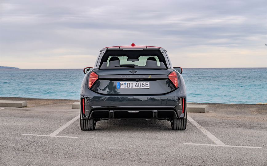 Στον βασικό εξοπλισμό της έκδοσης JCW περιλαμβάνονται εντυπωσιακοί διαχύτες εμπρός και πίσω. Το πλαίσιο της μάσκας και το λογότυπο φέρουν γυαλιστερό μαύρο φινίρισμα. Ιδιαίτερη αίσθηση προκαλεί επίσης το κόκκινο χρώμα αντίθεσης Chilli Red στην οροφή και στα καλύμματα των καθρεπτών. Οι Led προβολείς υιοθετούν ειδικές «φωτεινές υπογραφές». Με επιλεγμένο το γραφικό JCW, τα εμπρός φώτα εμφανίζουν μόνο δύο οριζόντιες λεπτές λωρίδες ως φώτα ημέρας και τονίζουν τη μινιλαμιστική σχεδίαση του νέου MINI Cooper SE. Τα γραφικά των πίσω φωτιστικών σημάτων (matrix) αναδεικνύουν το πλάτος του αυτοκινήτου.