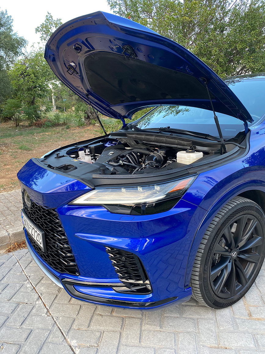 Η Lexus ήταν πάντα γνωστή για τη δέσμευσή της στην λεπτομέρεια, και το RX 500 Sport Direct4 δεν αποτελεί εξαίρεση. Η συναρμογή και το φινίρισμα του εσωτερικού είναι άψογα, με κάθε στοιχείο σχεδιασμένο στην εντέλεια. Από τα εργονομικά σχεδιασμένα χειριστήρια μέχρι το διαισθητικό σύστημα infotainment, κάθε λεπτομέρεια έχει μελετηθεί προσεκτικά για να βελτιώσει την εξυπηρέτηση οδηγού και επιβατών. Το μόνο που μας χάλασε ήταν η παντελής έλλειψη φυσικών διακοπτών, καθώς όλοι οι χειρισμοί έχουν περάσει στην οθόνη πολυμέσων αφής των 14 ιντσών που διαθέτει όλες τις σύγχρονες δυνατότητες σύνδεσης με smartphone και υποστηρίζει ασύρματη λειτουργία για το Apple CarPlay. Αυτονόητο συμπέρασμα των παραπάνω ότι, το μενού χρειάζεται διάβασμα και μια μικρή περίοδο προσαρμογής.