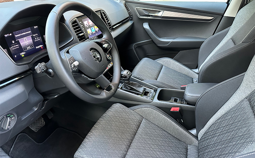 Έτσι κι αλλιώς, το Karoq (προφέρεται Κάροκ) δεν ποντάρει στις επιδόσεις και την σπορ συμπεριφορά, αλλά στην ισορροπία που προσφέρει ο σχεδόν άριστος συνδυασμός πλαισίου – ανάρτησης – συστήματος διεύθυνσης και κινητήρα/κιβωτίου. Αν σε αυτά προσθέσεις την πολύ καλή ηχομόνωση της καμπίνας και την ποιοτική κύλιση, έχεις ένα ολοκληρωμένο επιβατικό όχημα που εξυπηρετεί για πολλαπλές χρήσεις, ενώ έχει και την δυνατότητα για εκτός ασφάλτινων δρόμων μετακινήσεις. Μια δυνατότητα που ενισχύεται και από την ύπαρξη ρεζέρβας, ένα από τα στοιχεία που κάνουν την μάρκα δημοφιλή στους οδηγούς που θέλουν κυρίως εξυπηρέτηση και πρακτικότητα από τα οχήματά τους.
