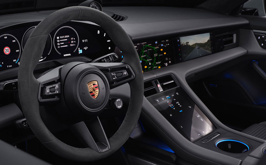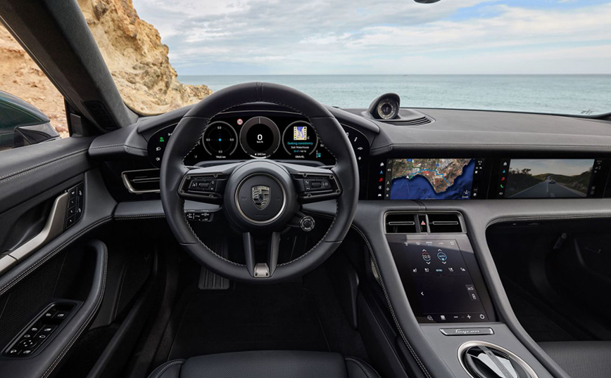 Ο πίνακας οργάνων, η κεντρική οθόνη και η προαιρετική οθόνη συνοδηγού διαθέτουν βελτιστοποιημένο περιβάλλον χρήστη με πρόσθετες λειτουργίες. Ο διακόπτης επιλογής προγράμματος οδήγησης στο τιμόνι περιλαμβάνεται πλέον στον βασικό εξοπλισμό. Για τα μοντέλα της Taycan που διαθέτουν το πακέτο Sport Chrono και την μπαταρία Performance Plus υπάρχει το ειδικό κουμπί «pushtopass» στον διακόπτη επιλογής προγράμματος οδήγησης.