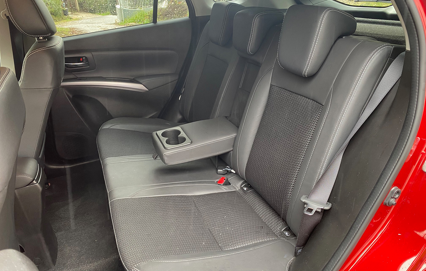 Οι χώροι επαρκούν άνετα για τέσσερις ενηλίκους, ενώ με ανοχή θα χωρέσει και πέμπτος με σχετική άνεση αφού το κεντρικό τούνελ έχει χαμηλό ύψος. Ο χώρος αποσκευών χωρά από 430 έως 440 λίτρα (ανάλογα με την κλίση της πλάτης του πίσω καθίσματος στις εκδόσεις GL+ και GLX), έχει διπλό πάτο και ορθογωνικό σχήμα που επιτρέπει την πλήρη αξιοποιησή του. Επιπλέον, οι πολλές θήκες για μικροαντικείμενα δεν είναι μεγάλες αλλά είναι πρακτικές. Αυτό που δεν είναι πρακτικό, είναι η έλλειψη ρεζέρβας, γεγονός που μπορεί να δημιουργήσει περιπέτειες, ειδικά στο S-Cross που έχει την δυνατότητα να επιχειρεί και σε χωμάτινες διαδρομές.