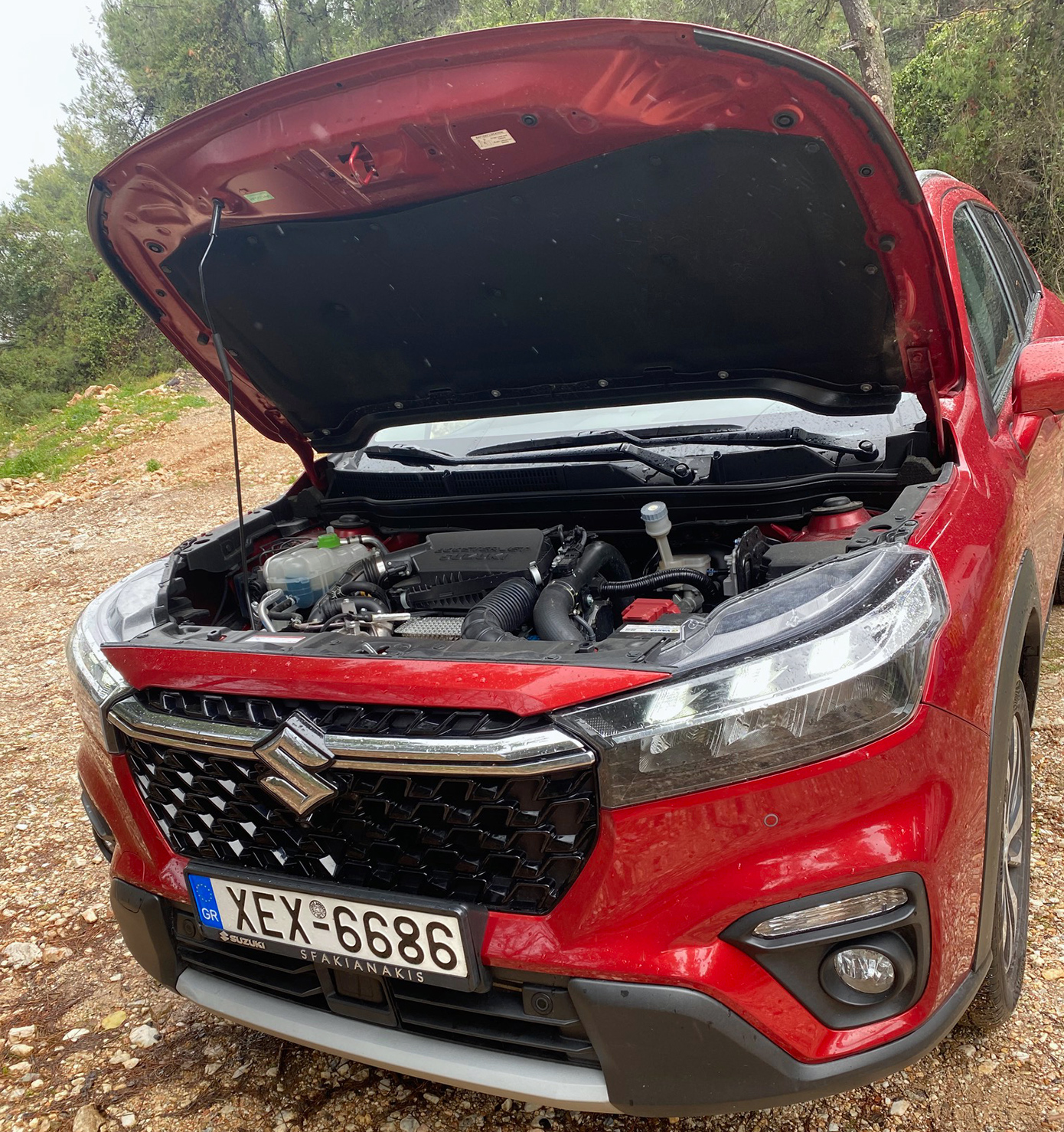 Το S-Cross/SX4 φορά τον άμεσου ψεκασμού βενζινοκινητήρα 1.4 λίτρων BoosterJet, με ήπιο υβριδικό σύστημα 48V, που περιλαμβάνει ηλεκτρογεννήτρια απόδοσης 14 ίππων και 53 Nm. Αυτή συνδέεται με ιμάντα στον στροφαλοφόρο άξονα και τροφοδοτείται από μπαταρία ιόντων λιθίου 48V χωρητικότητας 0,38 kWh. Επί της ουσίας η ηλεκτρογεννήτρια είναι το δυναμό, που παίζει και τον ρόλο της μίζας για την άμεση και χωρίς κραδασμούς επανεκκίνηση του κινητήρα κατά την λειτουργία stop/start. Επίσης στην διαδικασία της επιτάχυνσης η ηλεκτρογεννήτρια μέσω του ιμάντα βοηθά τον θερμικό κινητήρα, μειώνοντας έτσι την κατανάλωση και τους ρύπους.