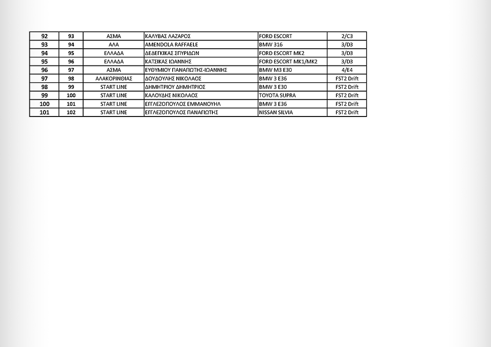 Ο Διοικητικός και Τεχνικός Έλεγχος θα πραγματοποιηθεί την Παρασκευή 5 Απριλίου από τις 17:30 έως τις 20:30 στο myKTEO Θαλάσση Γλύφας, καθώς και το Σάββατο 6 Απριλίου στο χώρο των πιτς από τις 08:00 έως τις 09:30.