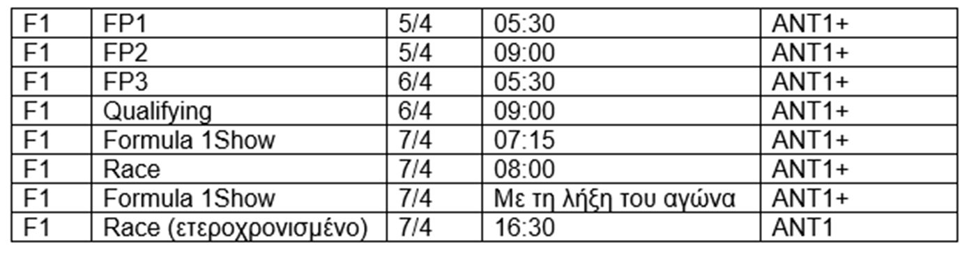 Αναλυτικά οι τηλεοπτικές μεταδόσεις του GP Ιαπωνίας, έχουν ως εξής: