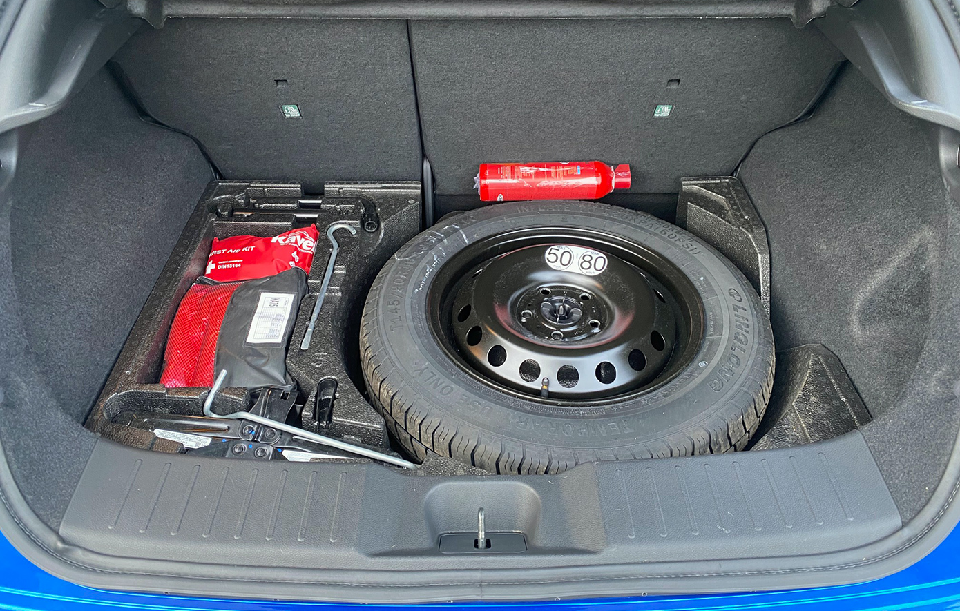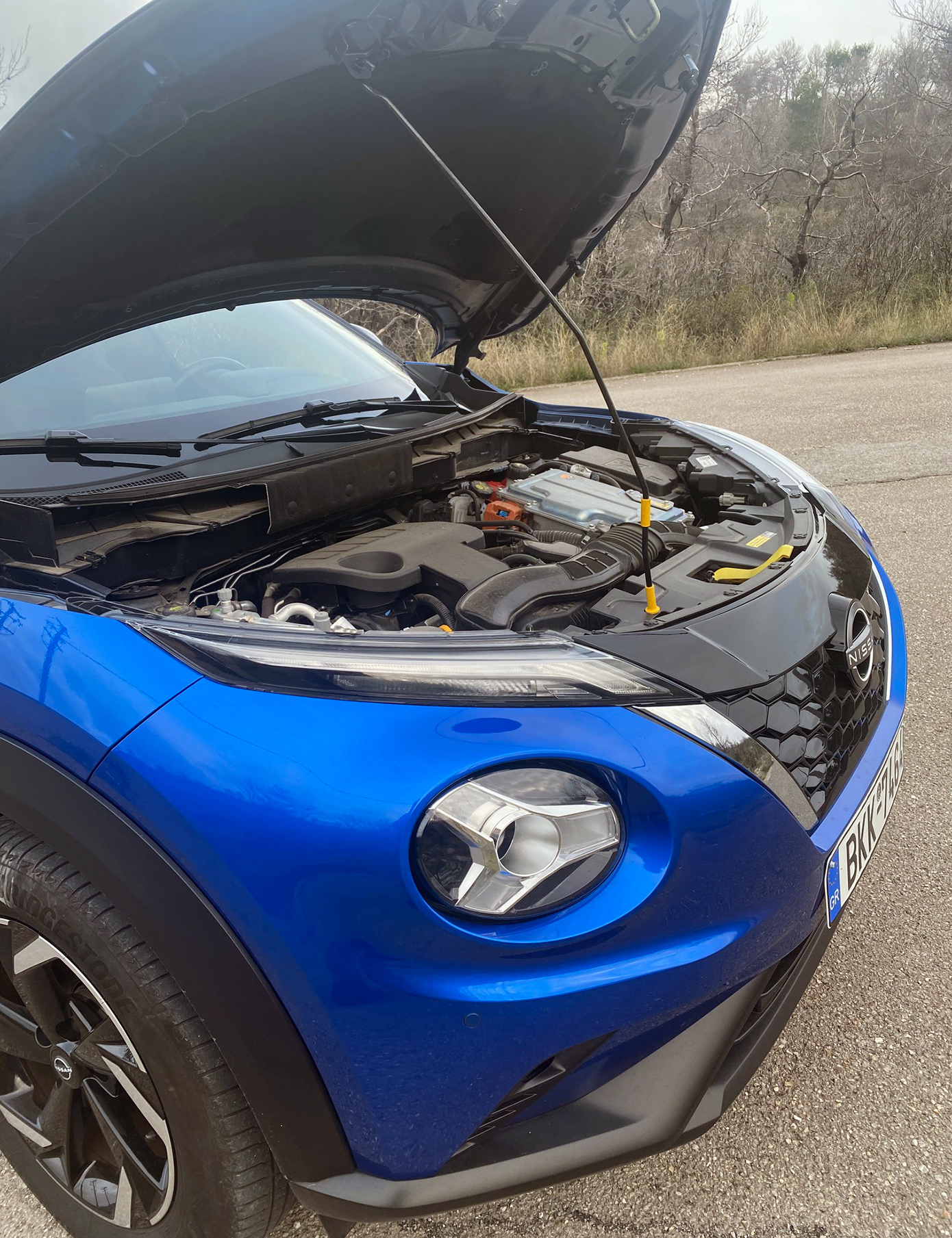 Επειδή όμως φτηνό, καλό και μπόλικο δεν γίνεται, η μπαταρία του υβριδικού συστήματος περιορίζει κατά 68 λίτρα τον χώρο αποσκευών που στην περίπτωσή μας είναι 354 λίτρα. Όμως, το Juke έχει κάτι απαραίτητο στους ελληνικούς δρόμους και αυτό είναι η ρεζέρβα ασφαλείας, πλεονέκτημα σημαντικό έναντι πολλών ανταγωνιστικών μοντέλων.