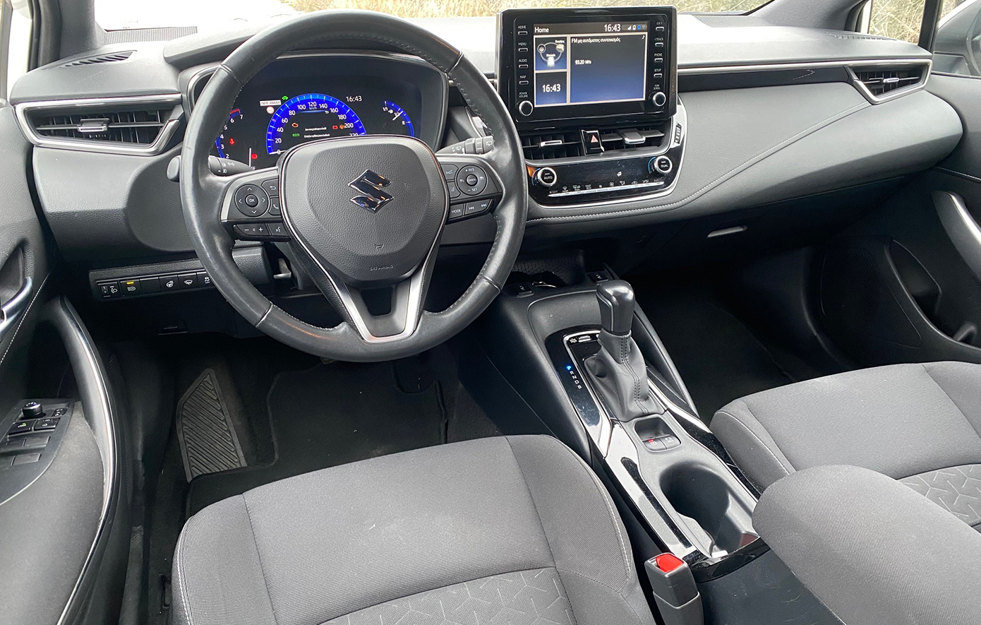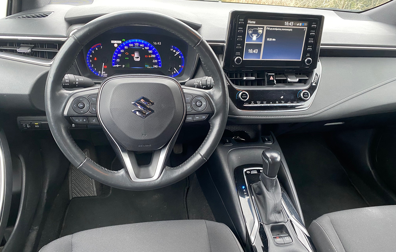 Επαρκής είναι και ο βασικός εξοπλισμός που περιλαμβάνει ζάντες αλουμινίου 16”, αυτόματο διζωνικό κλιματισμό, οθόνη αφής 8″ με κάμερα οπισθοπορείας, ηλεκτρικά αναδιπλούμενους και ρυθμιζόμενους εξωτερικούς καθρέπτες με ενσωματωμένα φλας, θερμαινόμενα καθίσματα & θερμαινόμενο δερμάτινο τιμόνι, 7 αερόσακους, σύστηματα ασφάλειας Suzuki Safety Support, σύστημα κλήσης eCall έκτακτης ανάγκης, Φώτα LED, ενώ εμπλουτίζεται σημαντικά στην έκδοση GLX που κοστίζει επιπλέον 2.000 ευρώ.