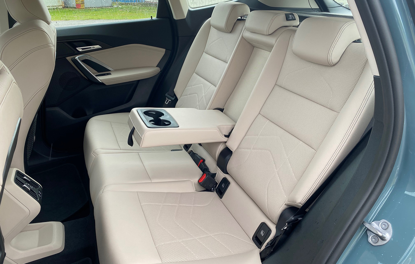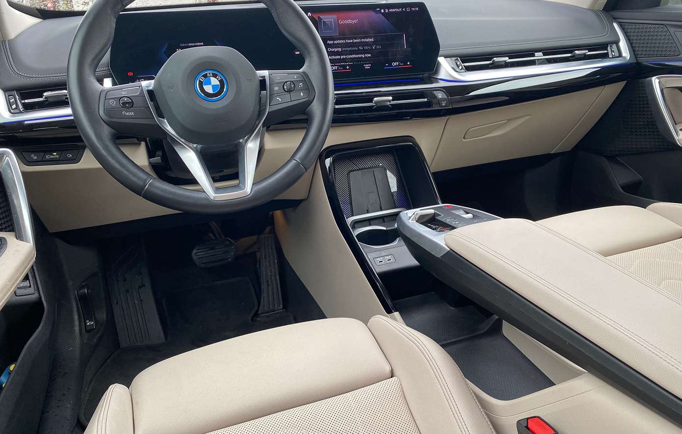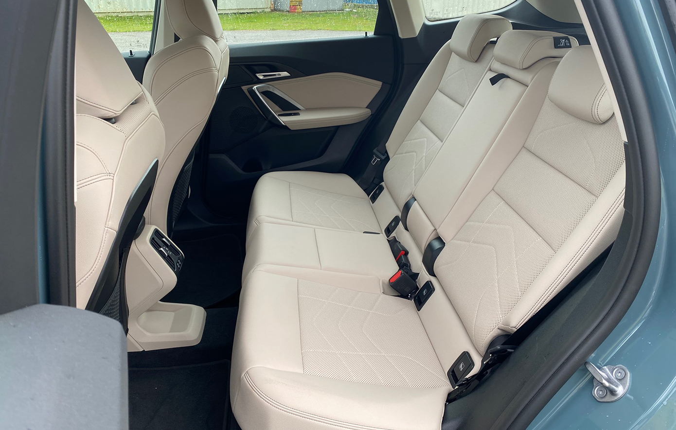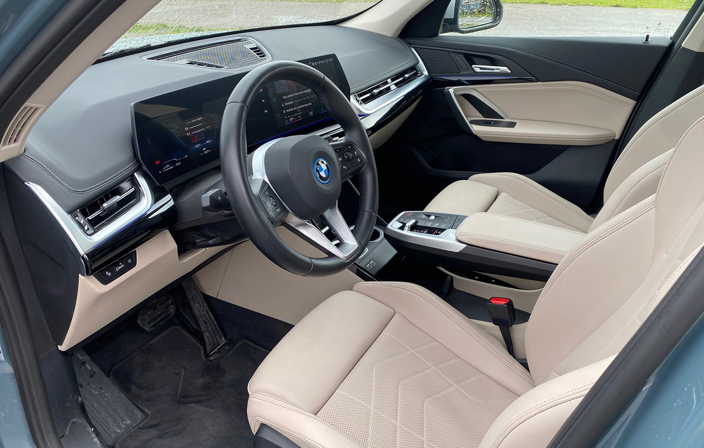Η Χ1 έχει φτάσει πλέον το μέγεθος της αρχικής Χ3 καθώς οι διαστάσεις της είναι: μήκος 4.500 χλστ., πλάτος 1.845 χλστ. και ύψος 1.630 χλστ. Οι τιμές αυτές σε συνδυασμό με το μεταξόνιο των 2.292 χλστ, βοηθούν στην σωστή εκμετάλλευση των πλούσιων εσωτερικών χώρων, δημιουργώντας μια κορυφαία στην κατηγορία καμπίνα επιβατών. Οι χώροι επαρκούν για τέσσερις ενήλικες, ή και πέντε επιβάτες καθώς το επίπεδο δάπεδο, δημιουργεί άνεση και στον –ενδεχόμενο- τρίτο μεσαίο πίσω επιβάτη. Οι πίσω επιβάτες έχουν επαρκέστατο χώρο για τα πόδια και τα κεφάλια τους, αλλά ο χώρος αποσκευών είναι κατά 50 λίτρα μικρότερος (χάθηκαν από την έλλειψη ρύθμισης του πίσω καθίσματος) από αυτόν των συμβατικών εκδόσεων, με συνολική χωρητικότητα 490 λίτρα που με αναδίπλωση των πίσω καθισμάτων αυξάνεται στα 1.495 λίτρα. Επιπλέον, υπάρχουν ποτηροθήκες ένας μεγάλος χώρος αποθήκευσης κάτω από την κεντρική κονσόλα και ένας κρυφός χώρος αποθήκευσης στο πάτωμα του πορτ μπαγκάζ που όμως καταλαμβάνεται από τα καλώδια φόρτισης, αλλά δεν διαθέτει ρεζέρβα (έστω και ασφαλείας). Ένας ακόαμα πολύ μικρότερος αποθηκευτικός χώρος βρίσκεται στο κεντρικό υποβραχιόνιο.