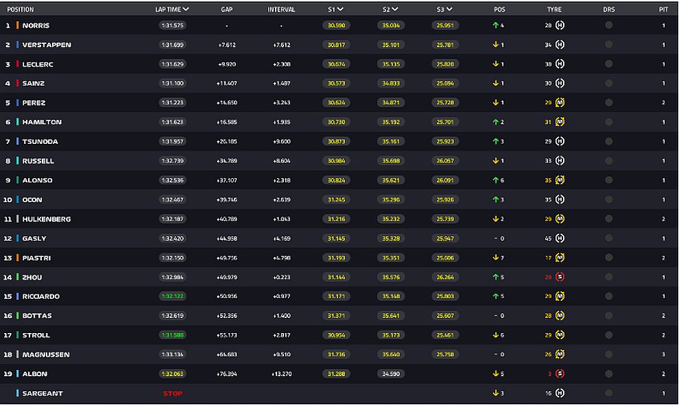 Στο τέλος, ο Λάντο Νόρις με τη McLaren, που σε αυτόν τον αγώνα είχε πολλές αναβαθμίσεις, που συνδύασε την ταχύτητα, την ικανότητα και την τύχη για να πάρει την πρώτη νίκη της καριέρας του στην F1. O Βρετανός επωφελήθηκε από την εμφάνιση του Αυτοκινήτου Ασφαλείας, βρέθηκε στην πρώτη θέση και την κράτησε μέχρι το τέλος.