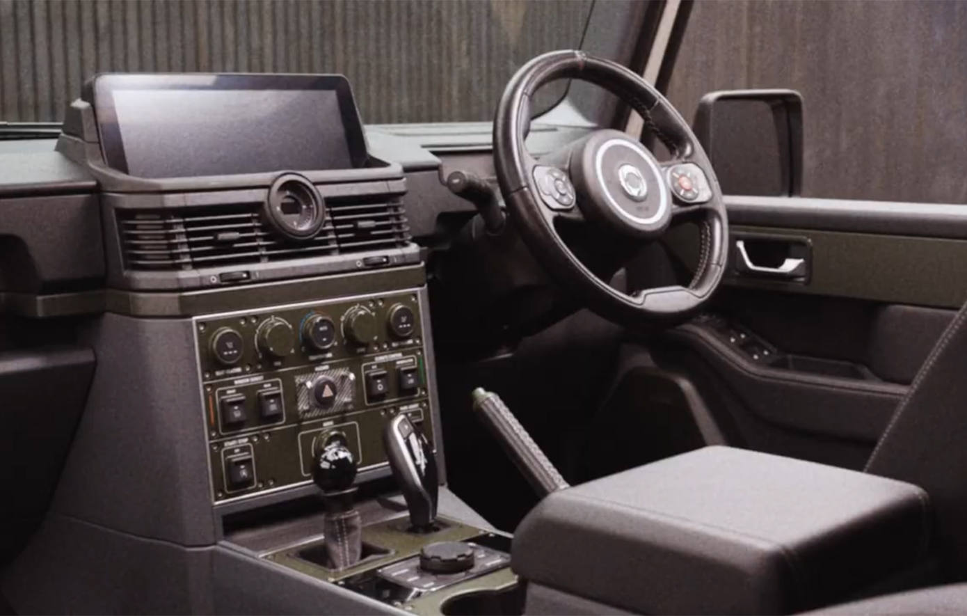 Στο εσωτερικό, το μοντέλο διαθέτει σκούρο πράσινο ταμπλό, κεντρική κονσόλα, διακόπτες και κάρτες θυρών. Το τιμόνι είναι καλυμμένο με μαύρο δέρμα σέλας, όπως και η λαβή του χειρόφρενου και η χειρολαβή του συνοδηγού.