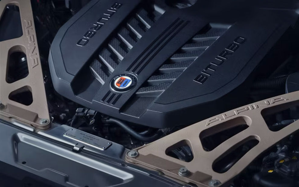Επιπλέον, οι τεράστιες ζάντες Alpina Classic 20 ιντσών είναι η πιο κομψή εξωτερική προσθήκη, που συμπληρώνεται τέλεια από τις διάσημες ριγέ γραμμές της μάρκας σε όλες τις πλευρές.
