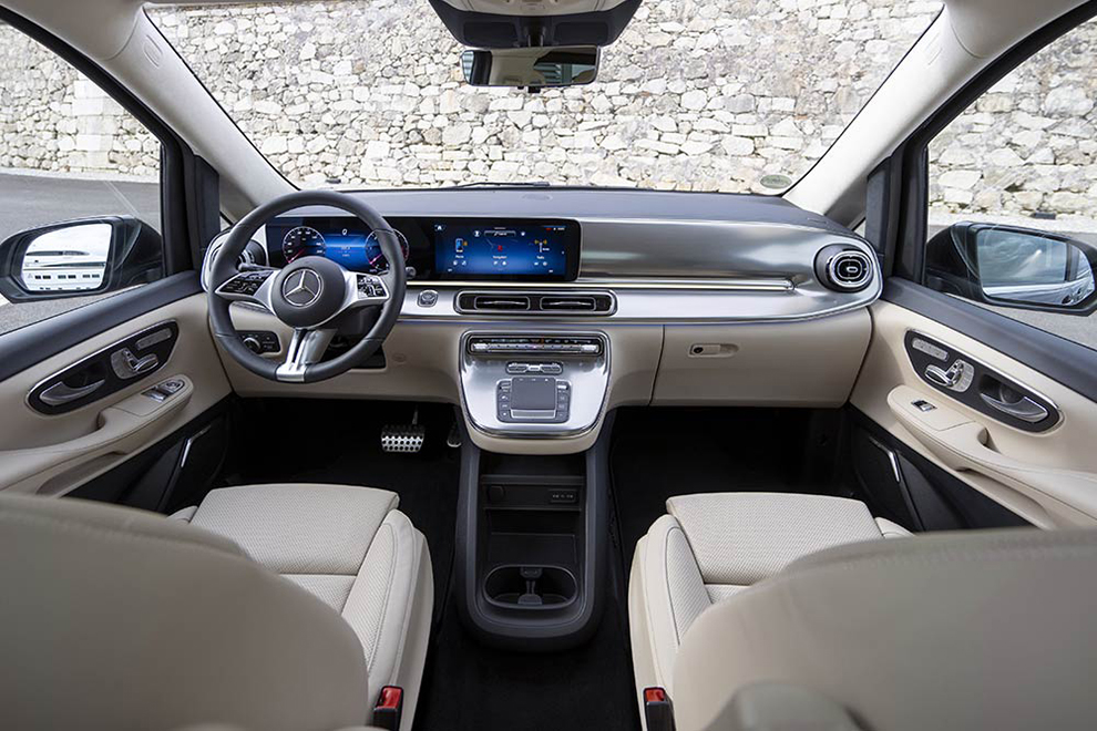 Οι πλευρικές, εκατέρωθεν συρόμενες πόρτες των V-Class και EQV, διευκολύνουν την πρόσβαση των επιβατών, ενώ με το νέο MBUX, οι οδηγοί τους εκμεταλλεύονται πρόσθετες λειτουργίες, όπως το streaming μουσικής, το σύστημα ελέγχου ανέσεων Energizing και την πλοήγηση με επαυξημένη πραγματικότητα.