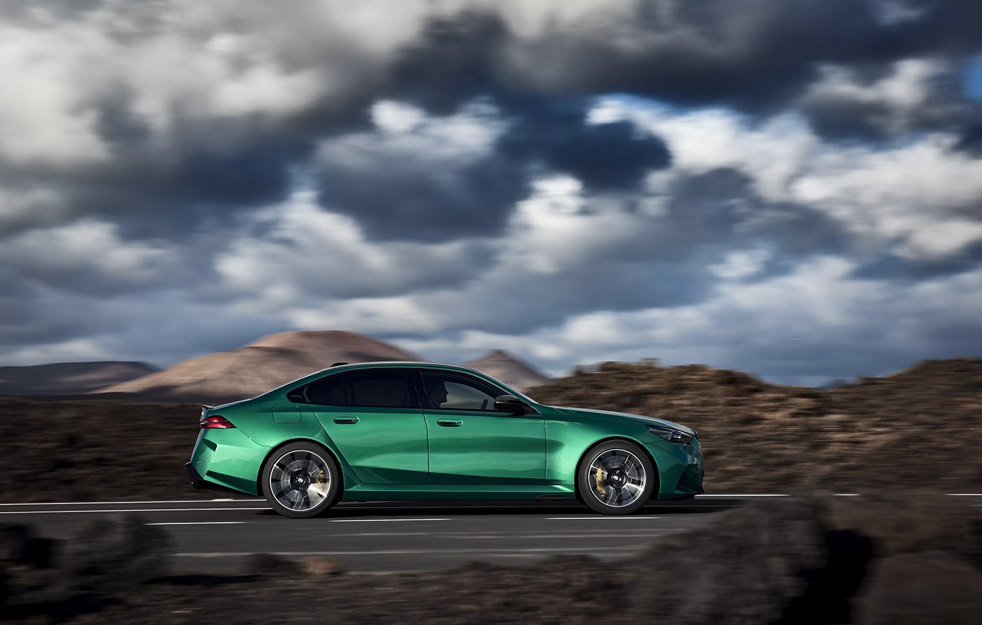 Η νέα Σειρά 5 φαίνεται αρκετά εντυπωσιακή με την BMW να προσφέρει 11 επιλογές χρωμάτων, ενώ από την άνοιξη του 2025, η θα προσθέσει μια νέα επιλογή δερμάτινων επενδύσεων BMW Individual Full Merino Metallic σε διχρωμία Black/Dark Violet και Taupe Grey/Deep Lagoon Pearl Effect.