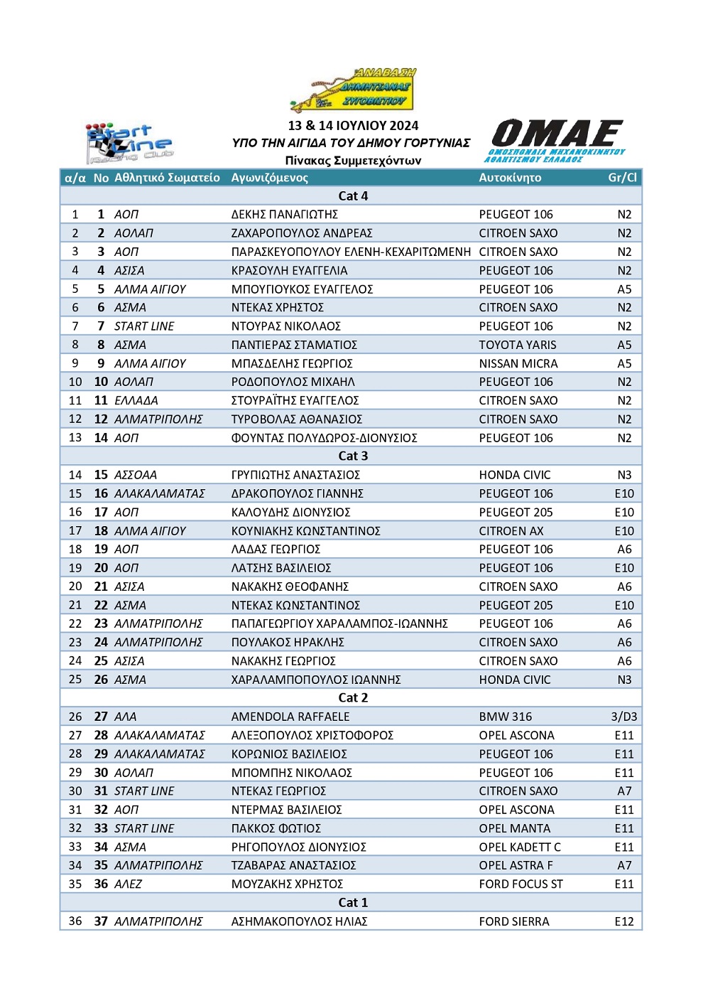 Δημοσίευση αποτελεσμάτων: Κυριακή 14 Ιουλίου, ώρα 16:00 (Στο χώρο του ParcFerme)