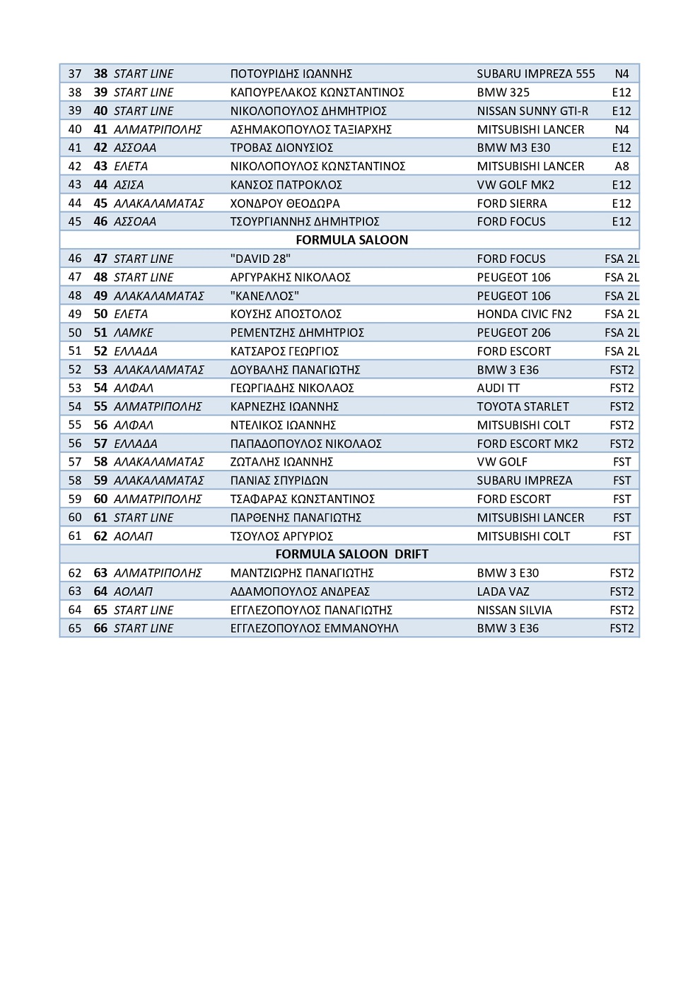 Ακολουθούν αναλυτικά οι οδηγοί που θα τρέξουν: