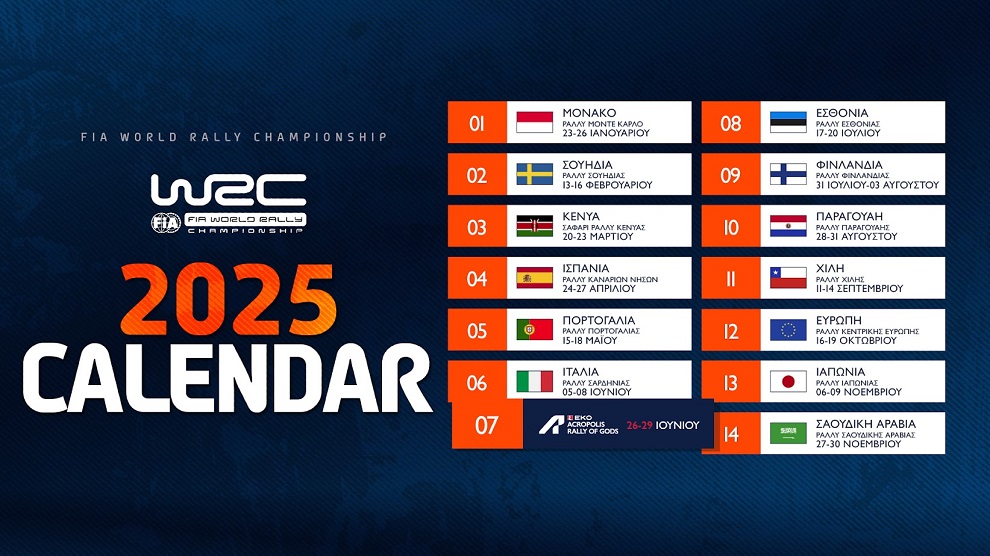 Το Παγκόσμιο Συμβούλιο της FIA ενέκρινε το πρόγραμμα του Παγκόσμιου Πρωταθλήματος Ράλι για το 2025, με το ΕΚΟ Ράλλυ Ακρόπολις να αποτελεί τον 7ο γύρο, που θα διεξαχθεί στις 26-29 Ιουνίου, με ότι αυτό μπορεί να συνεπάγεται για τις θερμοκρασίες που θα κληθούν να αντιμετωπίσουν τα πληρώματα. Αυτό όμως αποτελούσε πάντα ένα από τα βασικότερα στοιχεία της ταυτότητας του αγώνα, που καθιερώθηκε ως μία πρωτόγνωρη μίξη σκληρών οδοστρωμάτων και ζέστης.