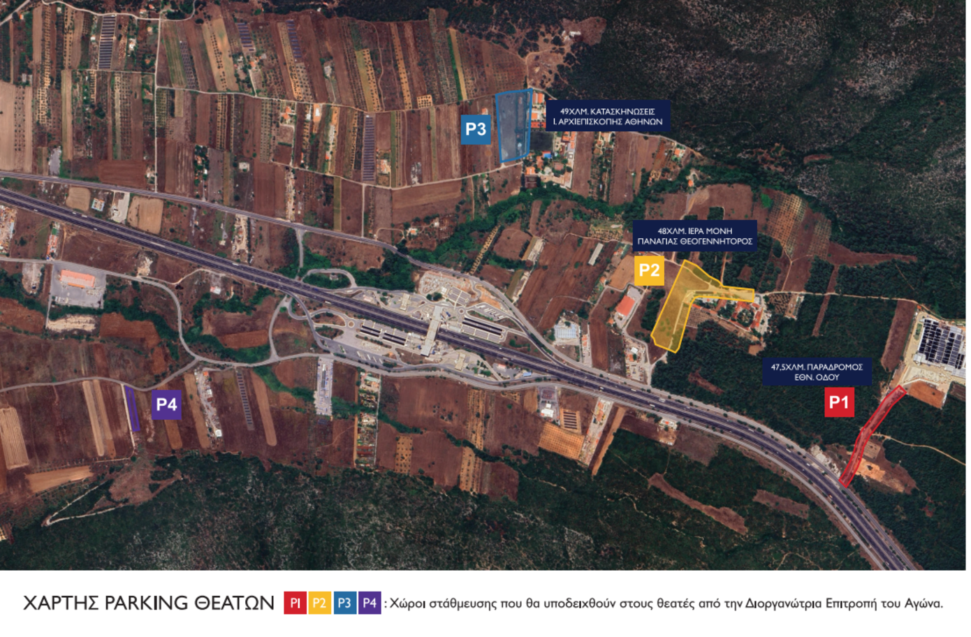 - Επειδή η εγκατάσταση μπορεί να εξυπηρετήσει συγκεκριμένο αριθμό θεατών, προτείνεται η άφιξη του κοινού να γίνει περίπου στις 18:00 για την εξασφάλιση θέσης στάθμευσης και παρακολούθησης. Για την απρόσκοπτη προσέλευση όλων, συστήνεται ο προγραμματισμός της άφιξης στο χώρο το νωρίτερο δυνατόν.