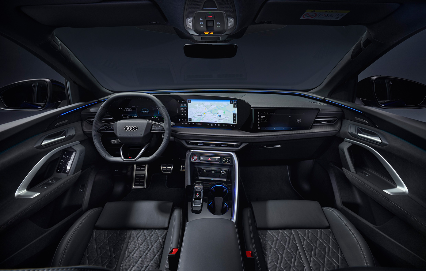 Στο εσωτερικό, η λειτουργικότητα και η αισθητική συνδυάζονται μέχρι την τελευταία λεπτομέρεια. Ο πίνακας ελέγχου που είναι κατασκευασμένος από υψηλής ποιότητας υλικά, εκτείνεταισε όλο το πλάτος του cockpit, και αποτελεί τη βάση για το “Digital Stage”. Πρόκειται για μία ψηφιακή σκηνή εμπρός από τον οδηγό και τον συνοδηγό, που αποτελεί το κεντρικό στοιχείο του εσωτερικού. Η λεπτή, κυρτή πανοραμική οθόνη Audi MMI τεχνολογίας OLED φιλοξενεί το Virtual Cockpit 11,9 ιντσών και την οθόνη αφής MMI 14,5 ιντσών.
