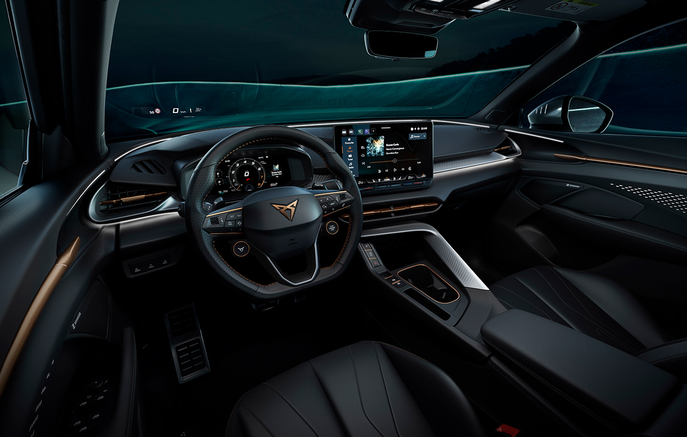 Στο σπορ εσωτερικό δεσπόζει το οδηγοκεντρικό cockpit, το οποίο αναδεικνύεται από τη σχεδίαση της κεντρικής κονσόλας, ενώ ακολουθεί τις αρχές της βιωσιμότητας με καθίσματα μπάκετ επενδεδυμένα είτε με ύφασμα που έχει δημιουργηθεί από 100% ανακυκλωμένο υλικό από νήματα Seaqual Yarn, Dinamica με τουλάχιστον 73% ανακυκλωμένο ύφασμα ή δέρμα με φυτική κατεργασία.