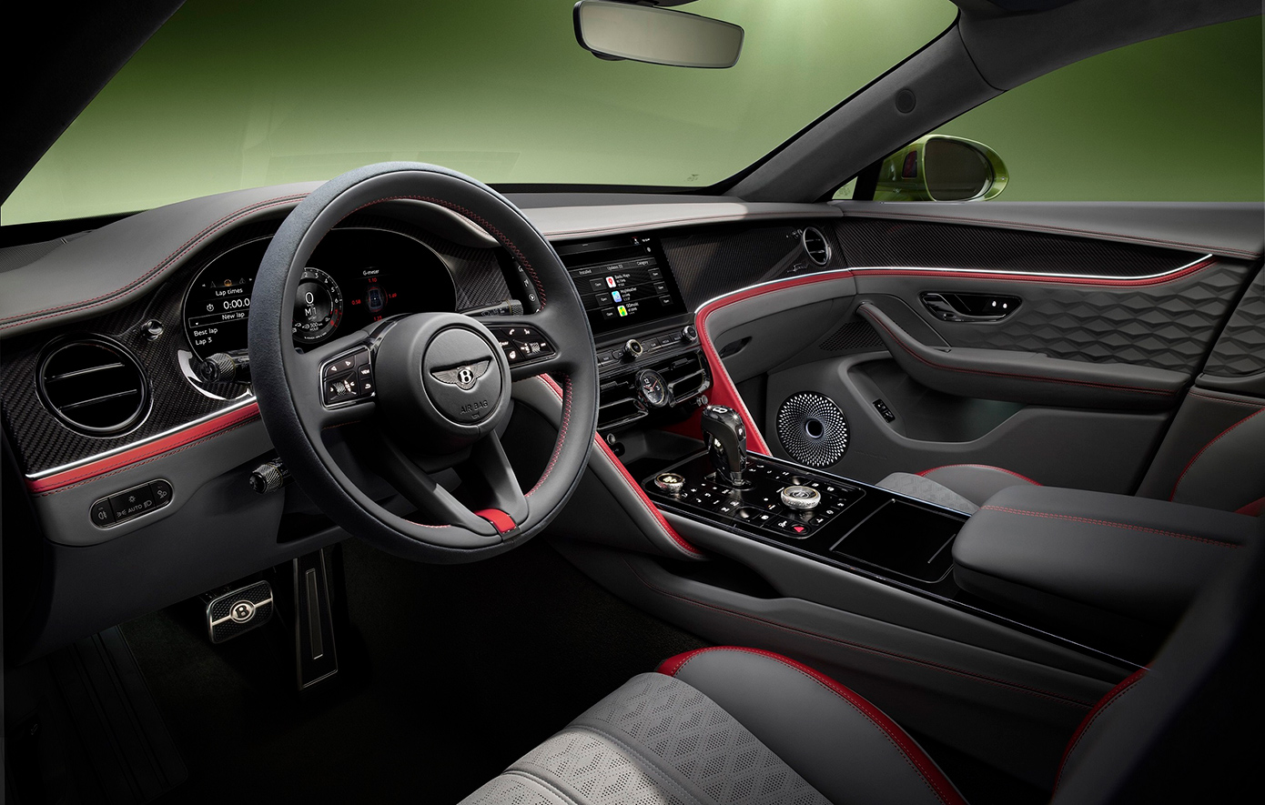 Οι επεμβάσεις στο εσωτερικό απογειώνουν την πολυτέλεια με νέες επιλογές ραφών, δέρμα σε μοτίβο τρισδιάστατου διαμαντιού που επεκτείνεται σε πόρτες και κολόνες αλλά και επιπλέον χαρακτηριστικά ευεξίας, όπως ο έξυπνος ιονισμός αέρα και η επιλογή αυτόματης ρύθμισης στάσης και στα τέσσερα καθίσματα, που σηματοδοτεί ακόμη περισσότερες δυνατότητες για απεριόριστη εξατομίκευση. Επιπλέον, η εισαγωγή του My Bentley App Studio φέρνει μια σειρά από χρήσιμες εφαρμογές (apps) κατευθείαν στα χέρια του οδηγού.