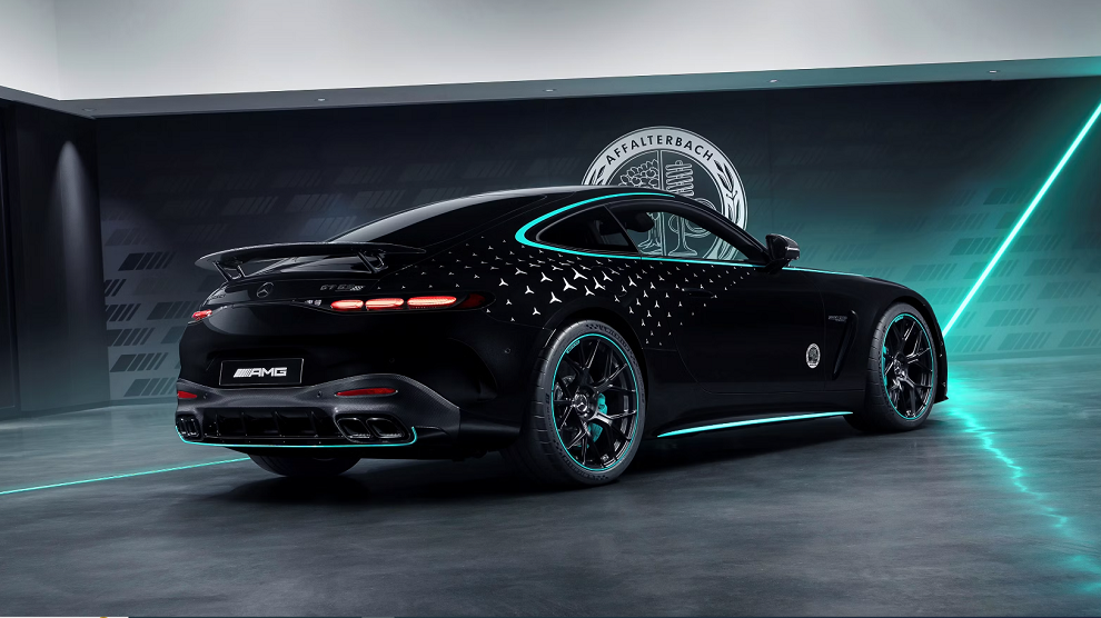 Η ειδική έκδοση της AMG GT θα κυκλοφορήσει με τιρκουάζ αποχρώσεις και βασική βαφή μια σκούρα απόχρωση του Obsidian Black Metallic εμπνευσμένη από τα εκτεθειμένα ανθρακονήματα του μονοθεσίου της F1.