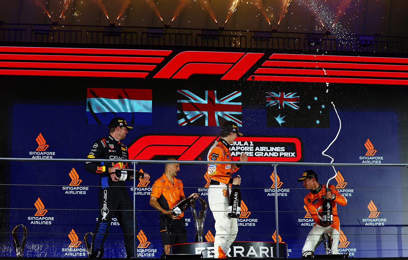 Ο Λάντο Νόρις πήρε μια καθοριστική νίκη για τη συνέχεια του πρωταθλήματος, στη Μαρίνα Μπέι υπό το φως των προβολέων. Ήταν η 3η νίκη στη καριέρα του νεαρού Βρετανού, μετά από αυτές σε Μαϊάμι και Ολλανδία. Ο Μαξ Φερστάπεν ελαχιστοποίησε τις απώλειές του τερματίζοντας δεύτερος, έτσι η βαθμολογική διαφορά ανάμεσά τους, μειώθηκε στους 52 βαθμούς, ενώ απομένουν 180 βαθμοί να μοιραστούν σε 6 αγώνες (150 για τη νίκη, 24 για τα 3 Sprint και 6 για τους ταχύτερους γύρους).