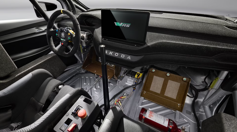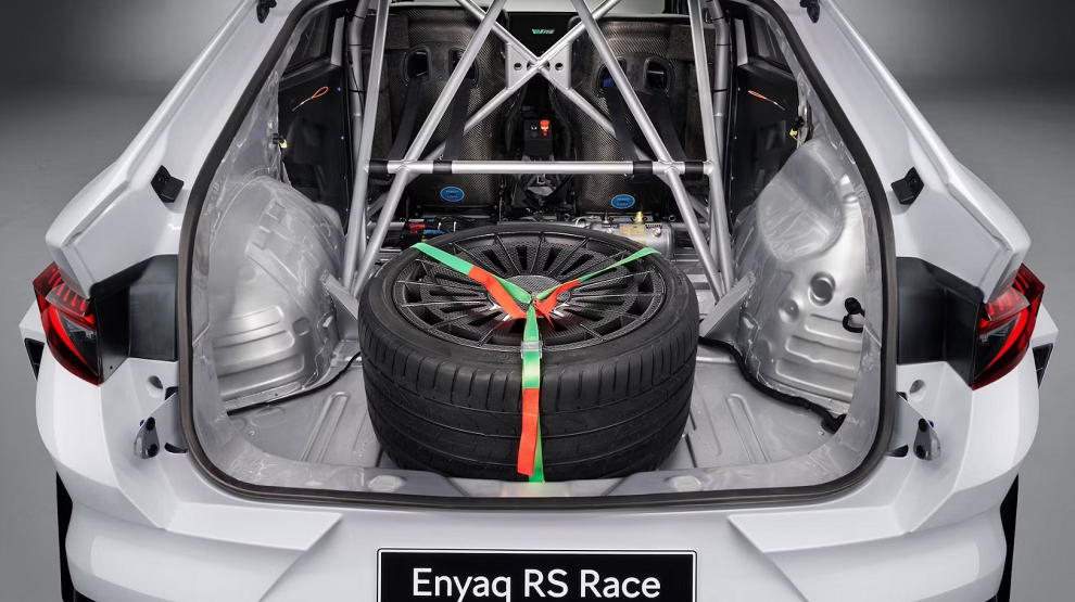 Το CARBUZZ έγραψε ότι η Škoda απογύμνωσε την καμπίνα του βασικού Enyaq, αφαιρώντας τα πίσω καθίσματα και προσθέτοντας έναν κλωβό κύλισης για την ασφάλεια στην πίστα.