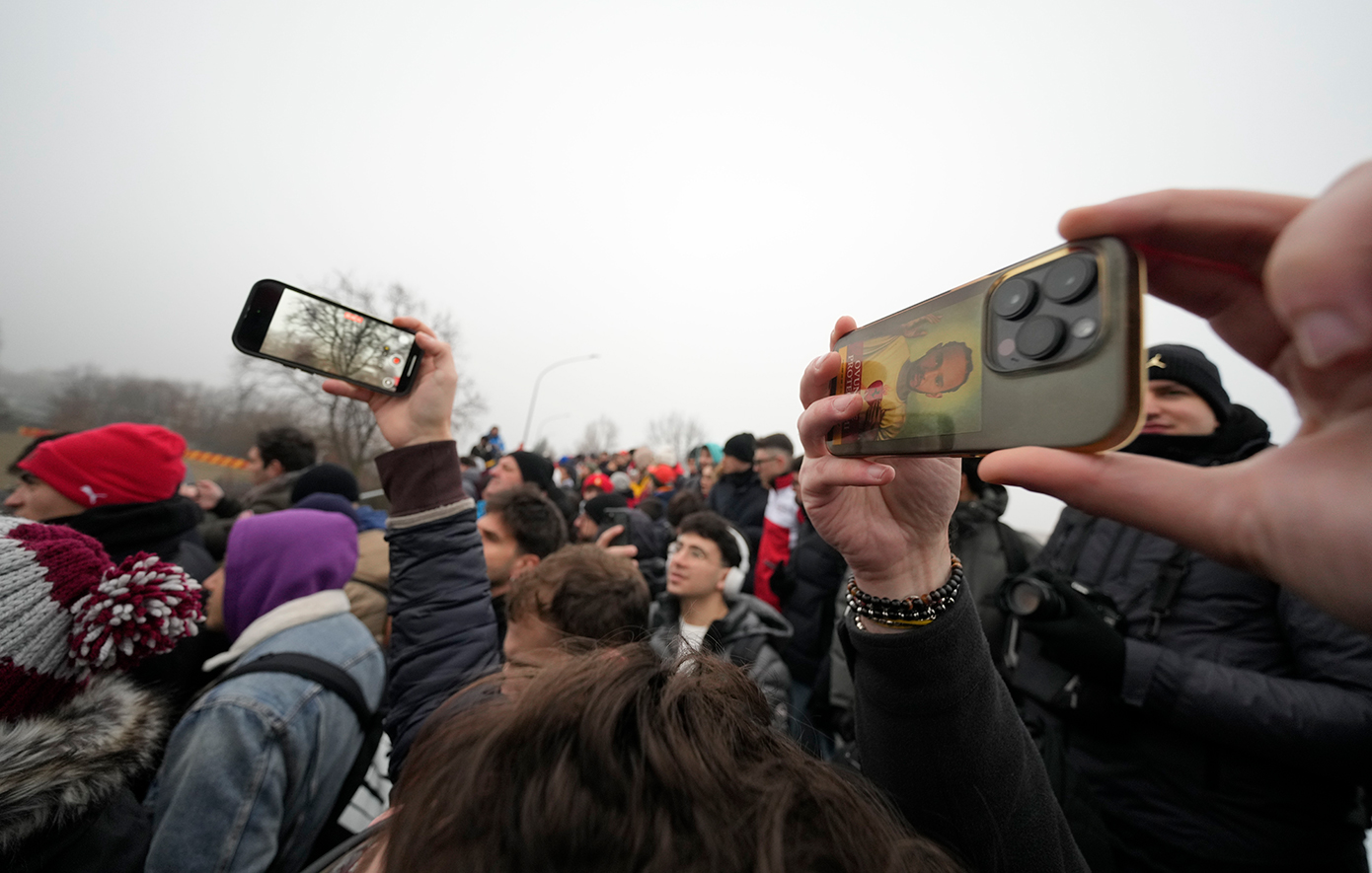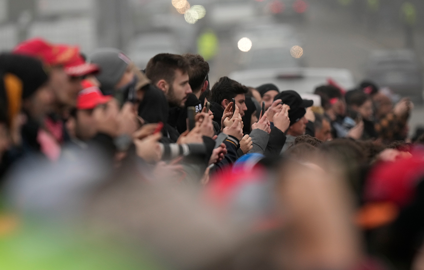 Πλήθος φιλάθλων συγκεντρώθηκε έξω από την πίστα για να δουν τον νέο τους οδηγό σε δράση.