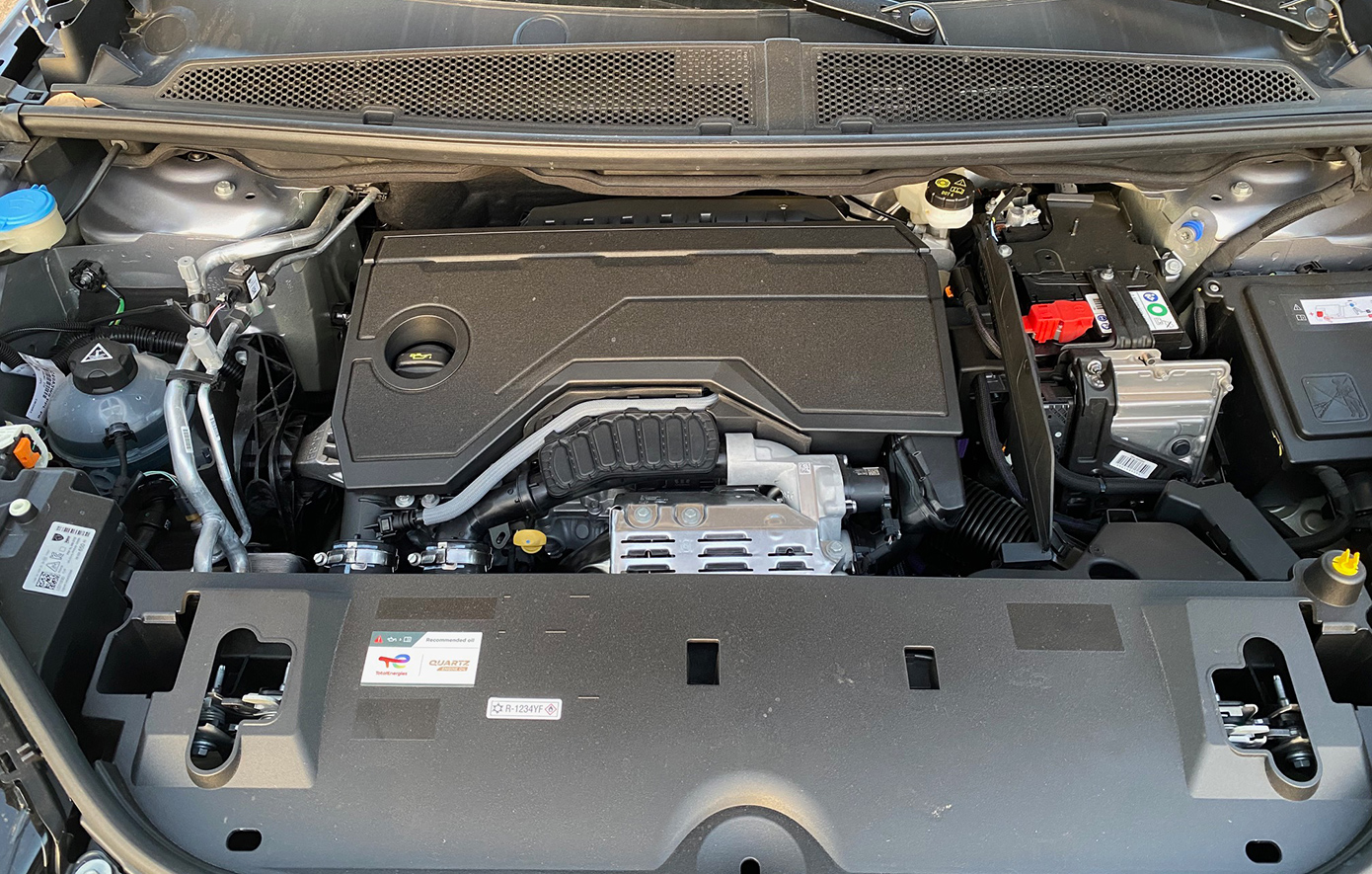 Η υβριδική έκδοση του 3008 που οδηγήσαμε, βασίζεται στον νέο 3κύλινδρο βενζινοκινητήρα PureTech 1.2 που αποδίδει 136 ίππους και σε έναν ηλεκτροκινητήρα απόδοσης ισχύος 22 ίππων.