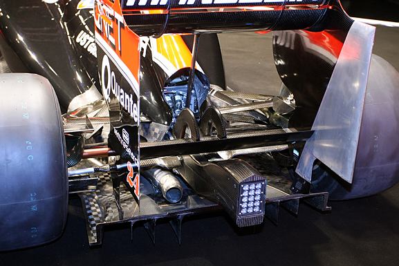Η μεγαλύτερη εξέλιξη που έχει πραγματοποιήσει η Virgin φέτος, αφορά το σχεδιασμό των, μεγάλου μήκους, εξατμίσεων, οι απολήξεις των οποίων βρίσκονται πολύ κοντά στον κεντρικό διαμήκη άξονα του μονοθεσίου και εκτείνονται έως το πίσω μέρος του διαχύτη, διοχετεύοντας τα καυσαέριά από πάνω του, βελτιώνοντας έτσι την αεροδυναμική απόδοση του πίσω μέρους.