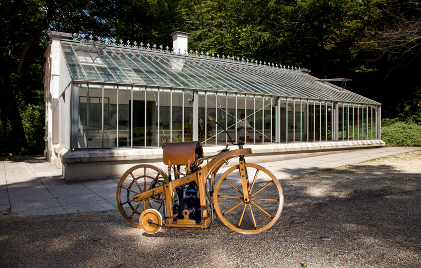 Μετά από αρκετές διοικητικές θέσεις στη βιομηχανία ως μηχανολόγος, ο Gottlieb Daimler εγκαταστάθηκε στο Cannstatt το 1882 και αγόρασε μια βίλα στην οδό Taubenheimstrasse. Πρόσθεσε μια πλινθόκτιστη προέκταση στο θερμοκήπιο του μεγάλου κήπου του, δημιουργώντας ένα εργαστήριο (τον πυρήνα της δικής του start-up εταιρείας) έχοντας στόχο την «ανατροπή», με τη σύγχρονη έννοια του όρου. Εκεί, μαζί με τον επί χρόνια συνεργάτη και συνάδελφό του Wilhelm Maybach, ανέπτυξε τον υψηλόστροφο τετράχρονο κινητήρα ως ένα καθολικό σύστημα κίνησης.
