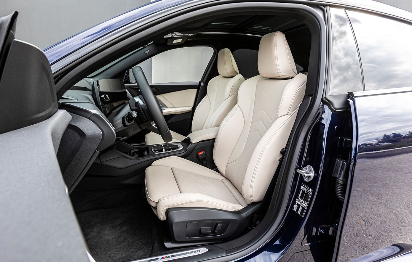Το εσωτερικό χρησιμοποιεί επενδύσεις χωρίς δέρμα (στάνταρ), ενώ η επένδυση Veganza/Alcantara διατίθεται προαιρετικά. Το Curved Display και ο νέας σχεδίασης επιλογέας ταχυτήτων υπογραμμίζουν τον καινοτόμο χαρακτήρα του εσωτερικού, ενώ τα νέας σχεδίασης καθίσματα προσφέρουν υψηλό επίπεδο άνεσης. Το στάνταρ σπορ τιμόνι μπορεί να αντικατασταθεί με ένα δερμάτινο τιμόνι M, επίσης νέας σχεδίασης, που αποτελεί μέρος του πακέτου M Sport και διαθέτει paddles για χειροκίνητες αλλαγές σχέσεων. Η πλάτη του πίσω καθίσματος είναι διαιρούμενη σε αναλογία 40: 20: 40 (στάνταρ), ενώ ο χώρος αποσκευών έχει χωρητικότητα 430 λίτρα (BMW 220 Gran Coupé, BMW 220d Gran Coupé: 360 λίτρα).