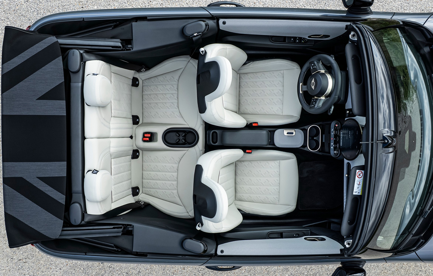 Το ανοικτό Mini βασίζεται στο κλειστό μοντέλο της σειράς και διαθέτει μια μαλακή αναδιπλούμενη οροφή που ανοιγοκλείνει ηλεκτρικά και αποθηκεύεται στο πίσω μέρος του αυτοκινήτου, μειώνοντας τη χωρητικότητα του χώρου φόρτωσης από τα 215 στα 160 λίτρα. Για τη μεγιστοποίηση του ύψους φόρτωσης του χώρου αποσκευών, ο αποθηκευτικός χώρος πίσω από τα πίσω καθίσματα μπορεί να ανυψωθεί χρησιμοποιώντας τους δύο μοχλούς ασφάλισης, ενώ η πίσω πόρτα ανοίγει προς τα κάτω για να διευκολύνει τη φόρτωση.