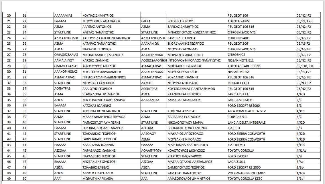 Η λίστα των συμμετοχών παρουσιάζει έντονο ενδιαφέρον, καθώς προμηνύονται όμορφες μάχες τόσο στη γενική κατάταξη, όσο και στις επιμέρους κατηγορίες. Ιδιαίτερο ενδιαφέρον έχει και η πρεμιέρα του Πανελληνίου Πρωταθλήματος Ράλι Ιστορικών αυτοκινήτων, θεσμός που συγκέντρωσε 17 συμμετοχές με αυτοκίνητα-θρύλους των παγκόσμιων ράλι του προηγούμενου αιώνα, όπως Lancia Delta Integrale, Lancia Stratos, Ford Escort RS2000 MKII, Alfa Romeo Alfetta GTV, Fiat 131 Racing, Ford Sierra RS Cosworth 4×4, Lada VAZ 21011, κ.ά.
