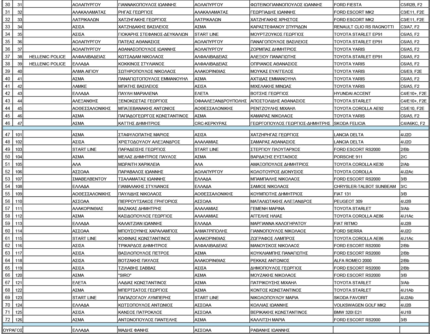 Κατά τα λοιπά, μεγάλος ανταγωνισμός αναμένεται για τη νίκη στην Κατηγορία Ν, όσο και στην κατηγορία F2 (αυτοκίνητα με κίνηση σε μόνο δύο τροχούς).