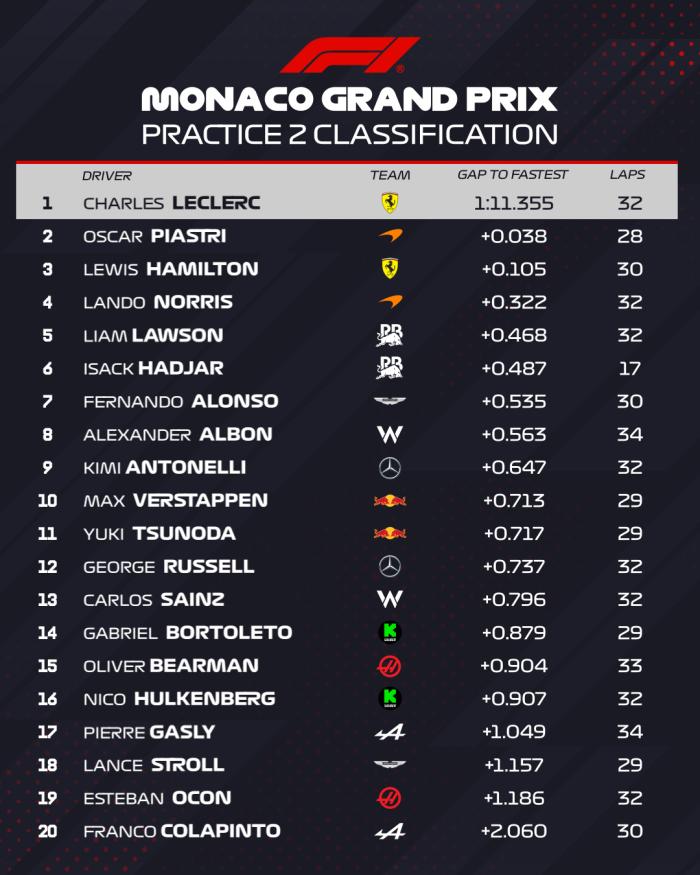 Την Παρασκευή, η Scuderia Ferrari είχε μια πολύ καλή παρουσία, όπως και το Πριγκιπάτο συνολικά. Ο Charles Leclerc, που αγωνίζεται εντός έδρας, κατέκτησε την πρώτη θέση και στη δεύτερη περίοδο των ελεύθερων δοκιμών. Ο χρόνος του ήταν εντυπωσιακός, με 1:11.355, διατηρώντας την πρωτοκαθεδρία του, παρότι ο Oscar Piastri ακολούθησε από πολύ κοντά, μόλις 38 χιλιοστά του δευτερολέπτου πιο αργός.