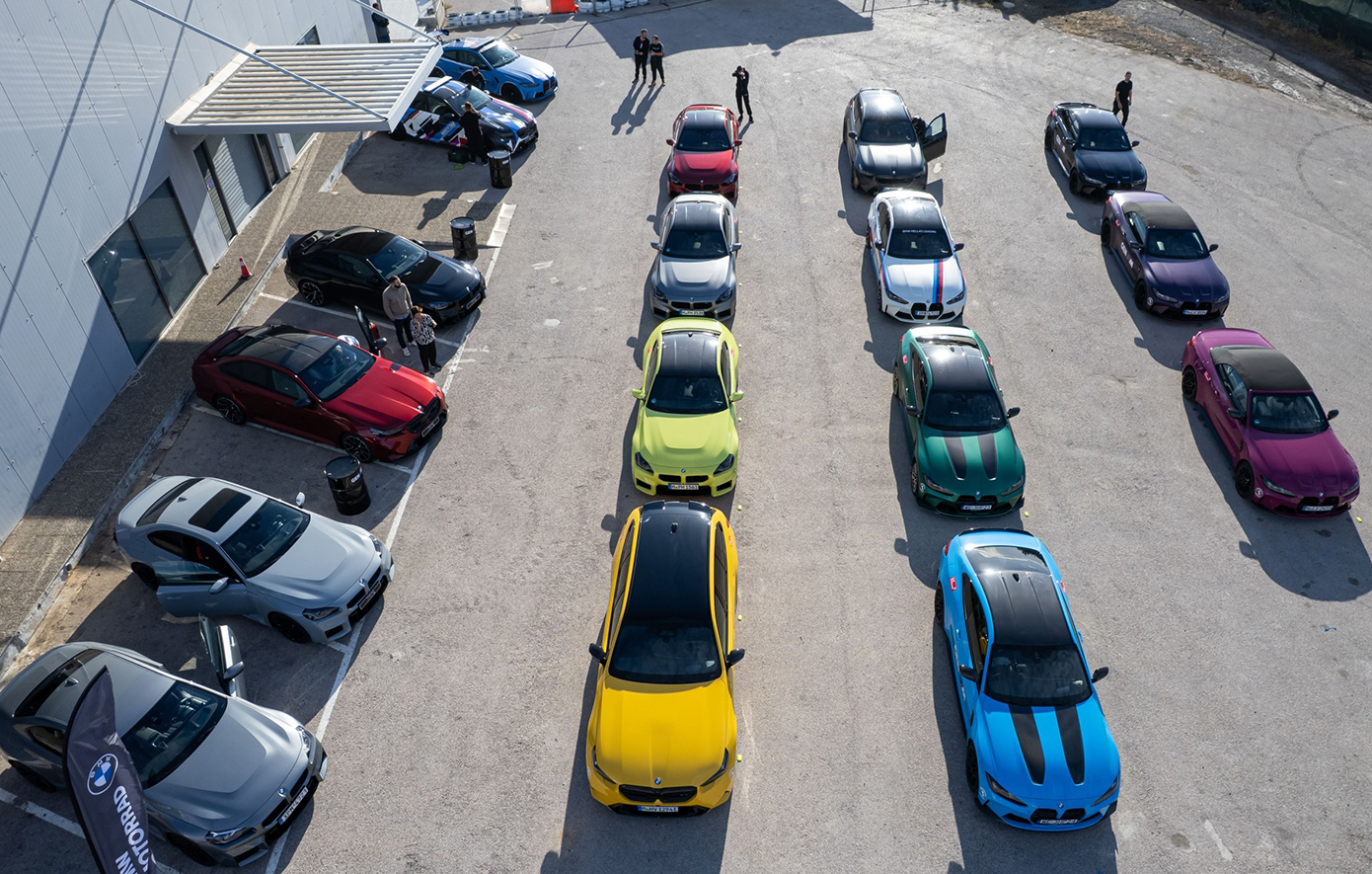 Στο πάρκινγκ της πίστας περίμενε ένας στόλος από BMW Μ2, Μ3, Μ4 & Μ5, στα χρώματα της ίριδας και χιλιάδες άλογα να «σιωπούν» κάτω από τα μεγάλα καπό, μας υποδέχθηκαν πρωί πρωί με τη δροσούλα σε ουράνιο φόντο που άφηνε υπονοούμενα για βροχή (ε ρε πάρτι που θα γινόταν…). Τελικά, το μόνο νερό που είδαμε ήταν στο skidpad, εκεί όπου όλοι προσπαθήσαμε να κάνουμε πάντες που όμως τις περισσότερες φορές κατέληγαν σε ατελείωτα μούτρα (υποστροφή) ή τετ α κέ.