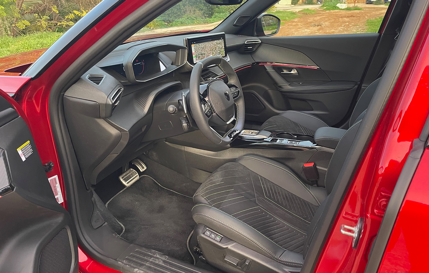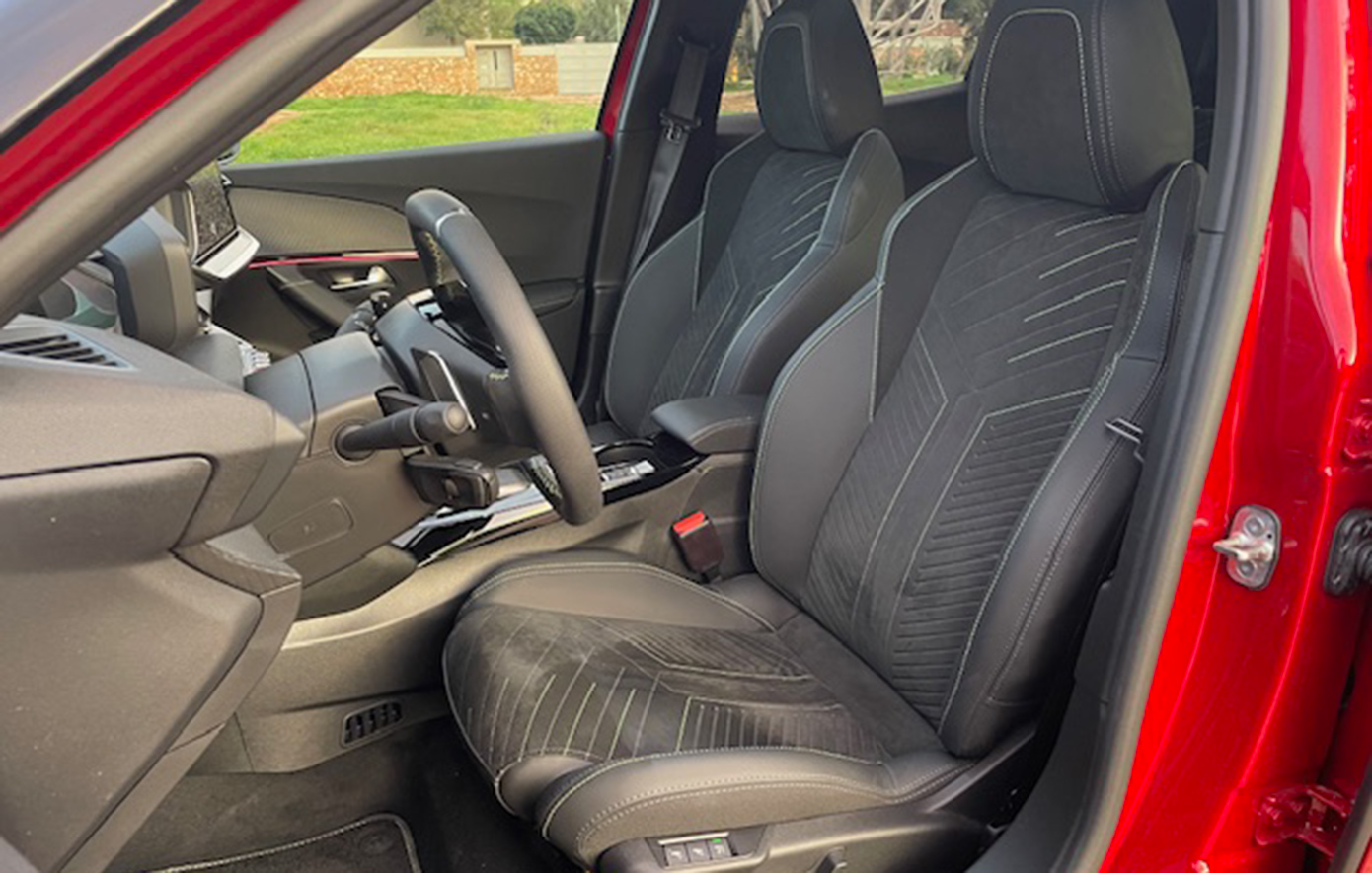 Τα άνετα καθίσματα με επενδύσεις Alcantara στο κέντρο και δέρματος στα πλαϊνά, στηρίζουν επαρκώς τα σώματα των εμπρός επιβατών στις στροφές και αποδεικνύονται ανατομικά στην χρήση.