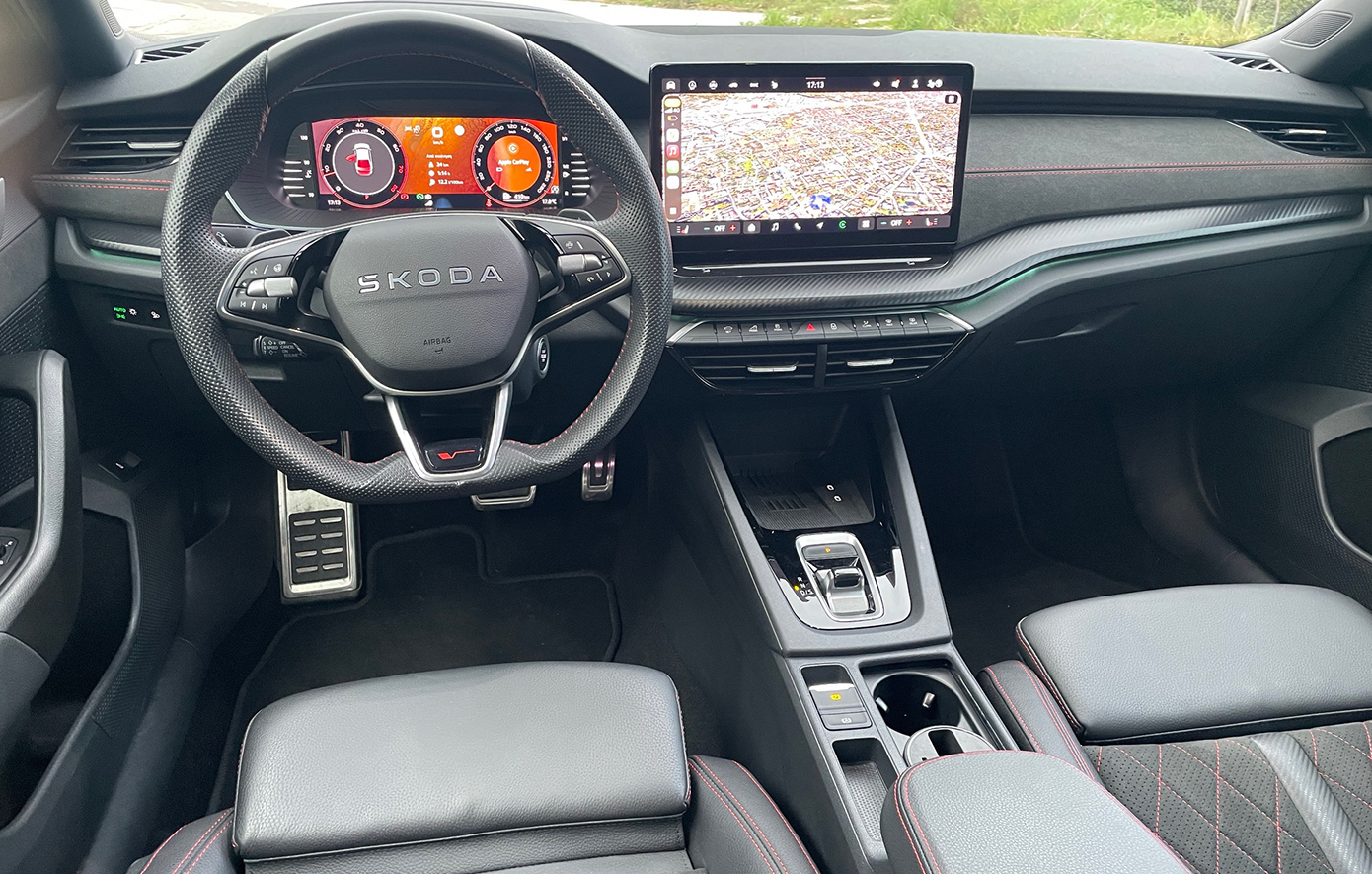 Στο άριστο μπάκετ του RS, κάθε άλλο παρά ταξιτζής αισθάνεσαι. Η εργονομία, ο διάκοσμος και ο εξοπλισμός του «Octavia Εξπρές», σε κάνει να ξεχνάς τον όγκο και τη χωρητικότητά του, ενώ αμέσως μετά, από τα πρώτα κιόλας χιλιόμετρα, διαπιστώνεις ότι, αυτό εδώ το Skoda θα μπορούσε εύκολα και χωρίς μετατροπές, να αντικαταστήσει το Peugeot 406 που πρωταγωνιστούσε στην περίφημη ταινία «Taxi» του 1998.
