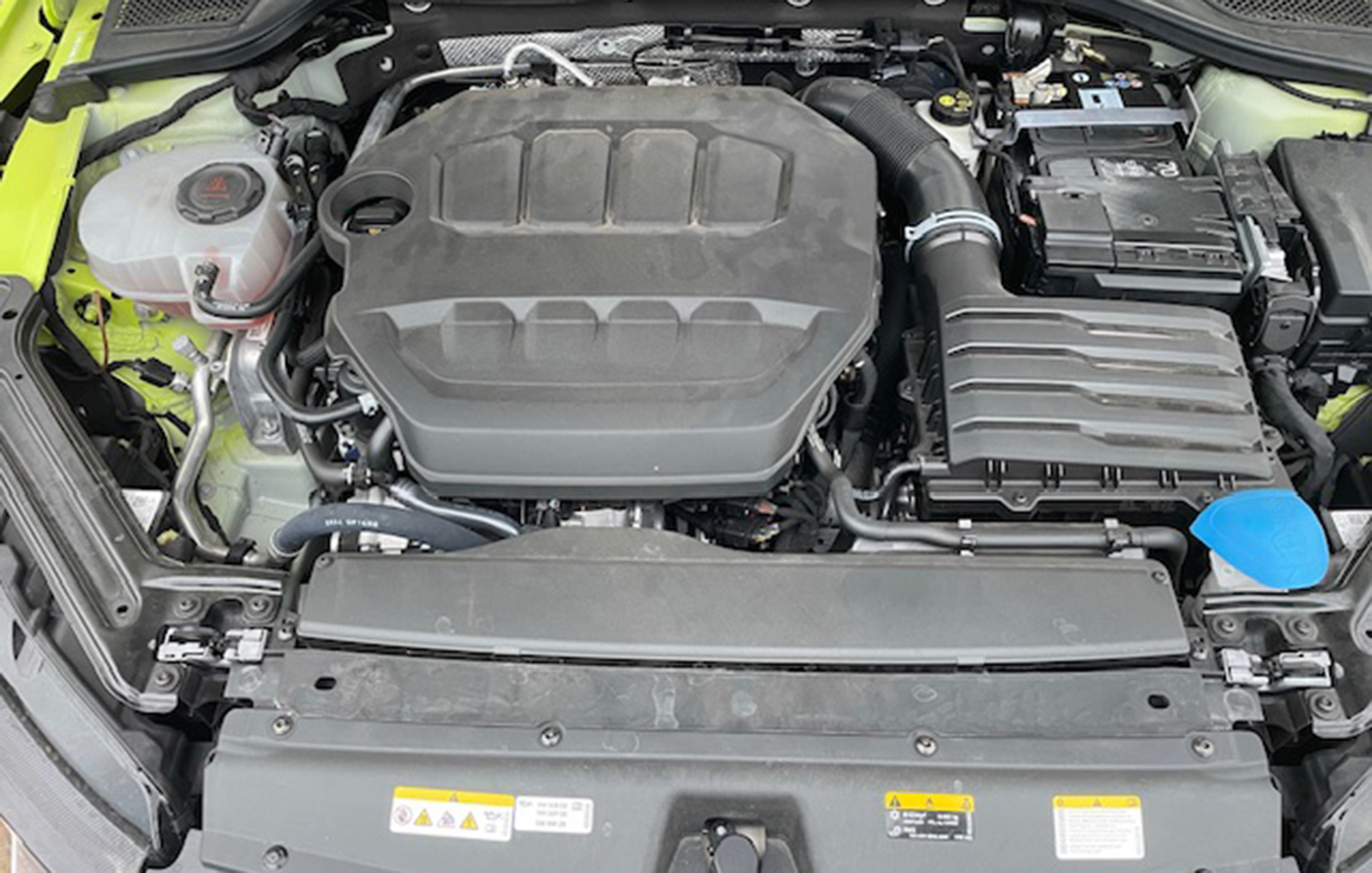 Κάτω από το μεγάλο καπό, βρίσκεται ο γνωστός 2λιτρος TSI βενζινοκινητήρας, ανόθευτος από την ηλεκτρική λαίλαπα της εποχής, με απόδοση 265 ίππων και ροπή 370Nm που αποδίδεται από τις μόλις 1.600 στροφές.