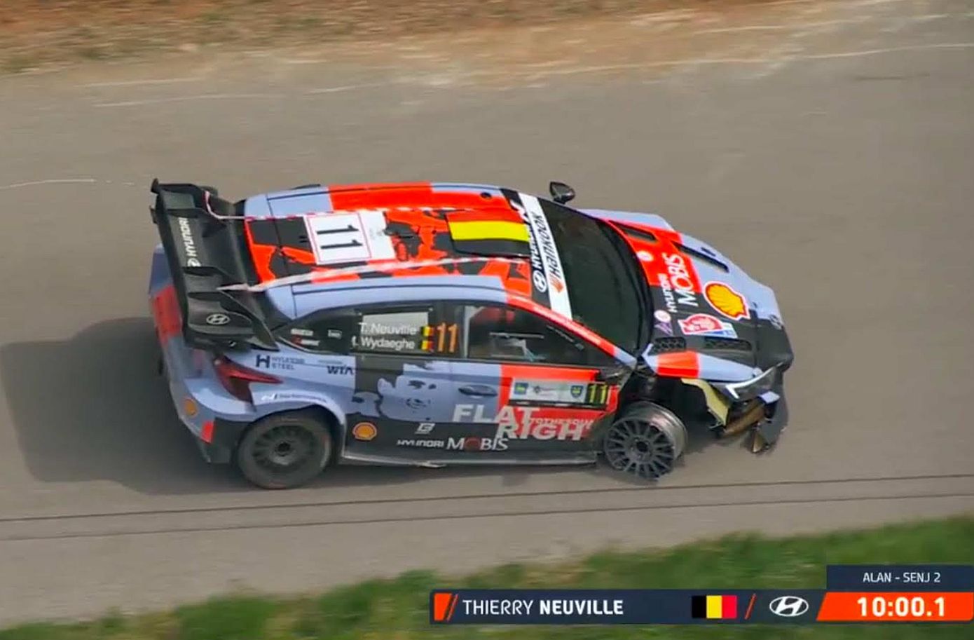 Συγκεκριμένα, την τρίτη και τελευταία ημέρα του κατ’ επίφαση και μόνο ασφάλτινου αγώνα, τα φαβορί μέχρι και την τελευταία, 20η ειδική διαδρομή, Νεβίλ – Βίταγκε, ενώ «ταξίδευαν» χωρίς να τους κυνηγά κανείς για την πρώτη εφετινή τους νίκη, έκαναν ένα παιδαριώδες λάθος, πλήγωσαν καθοριστικά το Hyundai i20N Rally1 που οδηγούσαν και εγκατέλειψαν λίγο πριν την ράμπα του τερματισμού, απογοητεύοντας όσο δεν πάει άλλο, την ομάδα τους και τους θαυμαστές τους.