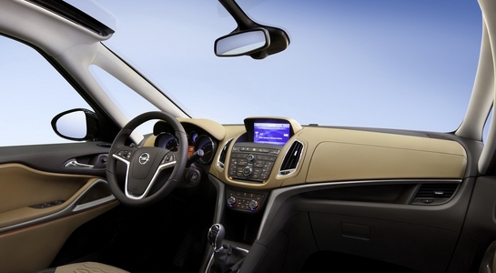 Το εσωτερικό μιμείται το στυλ Zafira Tourer concept ενώ έχει δανειστεί αρκετά στοιχεία από το Astra. Για να βελτιωθεί η εικόνα που αποπνέει η καμπίνα του αυτοκινήτου, οι Γερμανοί έχουν προσθέσει νέα χρώματα, προσφέροντας ταυτόχρονα ένα πανοραμικό παρμπρίζ που συνδυάζεται με μια γυάλινη ηλιοροφή .