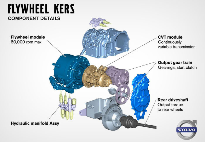 Σύμφωνα με τη Volvo λοιπόν, η εξέλιξη και χρήση του συστήματος KERS αποτελεί μια εύκολη και ελαφριά λύση η οποία μπορεί να αποφέρει εντυπωσιακά αποτελέσματα και ιδιαίτερα σημαντικά οφέλη στον τομέα της οικονομίας. Το σύστημα θα είναι τοποθετημένο στον πίσω άξονα, και θα χρησιμοποιεί την ηλεκτρική ενέργεια που δημιουργείται κατά τη διαδικασία της πέδησης (φρενάρισμα). Όταν αυτό είναι αναγκαίο, θα μεταδίδει την επιπλέον δύναμη στον πίσω άξονα, ενώ ο θερμικός κινητήρας θα απενεργοποιείται κατά τη διαδικασία του φρεναρίσματος. Η Volvo συνεργάζεται με την SKF για την εξέλιξη του KERS (Kinetic Energy Recovery System), και η επιπλέον απόδοση που θα δίνει στον κινητήρα εσωτερικής καύσης υπολογίζεται στους 80 ίππους, ενώ ο ρυθμός περιστροφής της φτερωτής του συστήματος είναι οι 60.000 σ.α.λ. Περισσότερες τεχνικές λεπτομέρειες δεν έχουν ανακοινωθεί ακόμη, ενώ η Volvo υπολογίζει να εξελίξει το σύστημα μέσα στο έτος που διανύουμε, και να το βγάλει στην παραγωγή μέσα στα επόμενα χρόνια, όπως χαρακτηριστικά αναφέρει.
