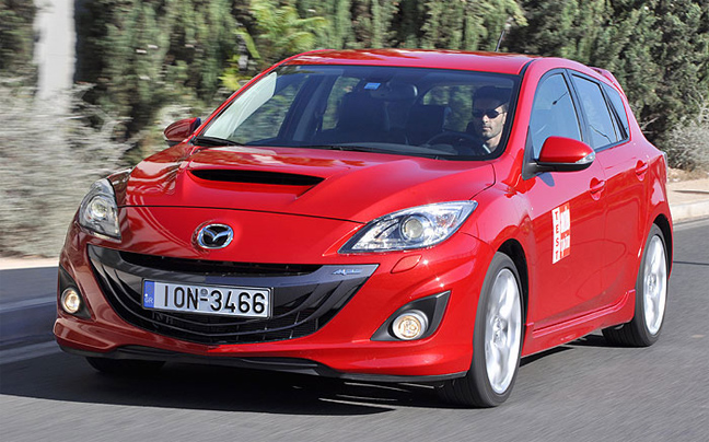 Η «Ιαπωνική» επιλογή της παρέας χρησιμοποιεί τον κωδικό 3 MPS και μας έρχεται από τη Mazda. Βασισμένο πάνω στα νορμάλ Mazda3, το MPS αναλαμβάνει να εξάπτει τη μέγιστη δυνατή οδηγική απόλαυση που μπορεί να προσφέρει ένα Mazda3. Εκ πρώτης όψεως, ο καθένας θα καταλάβει ότι πρόκειται για την κορυφαία έκδοση του μικρομεσαίου Mazda, κάτι που οφείλεται αρχικά στο μεγάλο εμπρός αεραγωγό, στον ανασχεδιασμένο με σπορτίφ στοιχεία και μεγάλη εισαγωγή αέρα προφυλακτήρα, στις 18 ιντσών ζάντες αλουμινίου στα τονισμένα μαρσπιέ και, τέλος, στις διπλές απολήξεις των εξατμίσεων και στην ευμεγέθη αεροτομή στο πίσω μέρος. Στην έκδοση MPS ο διάκοσμος έχει σπορτίφ καταβολές, περιλαμβάνοντας πινελιές χρωμίου, πιο σπορ αισθητικής πίνακα οργάνων, ενώ ανάμεσα στο ταχύμετρο και στο στροφόμετρο βρίσκεται μία νέα ένδειξη για την πίεση του υπερσυμπιεστή (turbo boost gauge) με φωτισμό LED. Ανασχεδιασμένα είναι και τα δερμάτινα-υφασμάτινα καθίσματα, που προσφέρουν σχετικά καλή στήριξη. Οι χώροι είναι καλοί για 4 επιβάτες και τις αποσκευές τους, με το σχετικό χώρο για εκείνες να ανέρχεται στα 340 λίτρα.