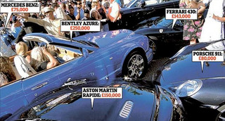 Υπαίτια του ατυχήματος, ήταν η ξανθιά οδηγός της Bentley Azure, αξίας 284.000 ευρώ, η οποία λόγω της κίνησης έπεσε πάνω σε μία Mercedes S Class κόστους 85.000 ευρώ! Επόμενο θύμα της άτυχης οδηγού, ήταν μία μαύρη Ferrari F430 το κόστος της οποίας φτάνει τα 162.000 ευρώ!