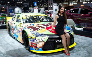 Και έπειτα, υπάρχουν οι Elizabeth και Brittany. Με το μαύρο της φόρεμα και τα κατακόκκινα ψηλοτάκουνά της η Elizabeth Smith (είχε κερδίζει τον τίτλο Miss Hawaiian Tropic Beauty 2014), χαμογελά μπροστά από το ένα Toyota, το αγωνιστικό αυτοκίνητο του επαγγελματία οδηγού του NASCAR, Kyle Busch. Το σόου ολοκληρώνεται απόψε.