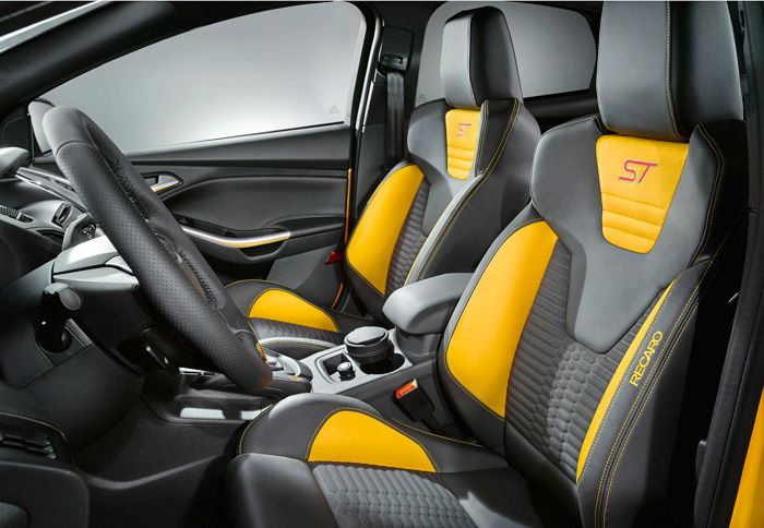 Οι λεπτομέρειες που μεταμορφώνουν το εσωτερικό του ST περιλαμβάνουν από τα ειδικά σχεδιασμένα πεντάλ, τιμόνι και επιλογέα ταχυτήτων μέχρι τα μοναδικά καθίσματα Recaro. Τα τελευταία προσφέρουν και αποκλειστικά premium χαρακτηριστικά όπως κλίση μαξιλαριού και ρύθμιση διαμήκους διαδρομής. Το ST φέρει νέου τύπου μπάκετ πίσω καθίσματα, από ειδικό αφρώδες υλικό. Η σκουρότερη επένδυση στην οροφή και τις κολόνες, επιτείνει την αίσθηση σπορ επιδόσεων. Το νέο Focus ST θα προσφέρεται στην Ευρώπη σε τρεις διαφορετικές εκδόσεις εξοπλισμού: ST1, ST2 και ST3.