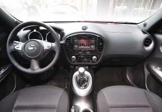 Ξεχωριστή και ιδιαίτερα νεανική είναι και η αισθητική του εσωτερικού του Juke. Από πλευράς ποιότητας ικανοποιεί σε μεγάλο βαθμό παρά την χρήση σκληρών πλαστικών τα οποία δείχνουν συμπαγή, ωστόσο στο φινίρισμα και στη συναρμογή τους δεν αποφεύγονται κάποιες μικροατέλειες. Πολύ καλή είναι η θέση οδήγησης παρότι το τιμόνι δε ρυθμίζεται σε βάθος, ενώ οι χώροι στο εσωτερικό του επαρκούν για τη μεταφορά 4 ενηλίκων με κάποιες παραχωρήσεις ως προς τον αέρα για τα κεφάλια πίσω. Το πορτ μπαγκάζ είναι ρηχό, όμως μαζί με τον έξτρα χώρο κάτω από το δάπεδο έχει συνολική χωρητικότητα 251 λίτρων και φτάνει έως τα 830 λτ. με την αναδίπλωση του πίσω διαιρούμενου καθίσματος.