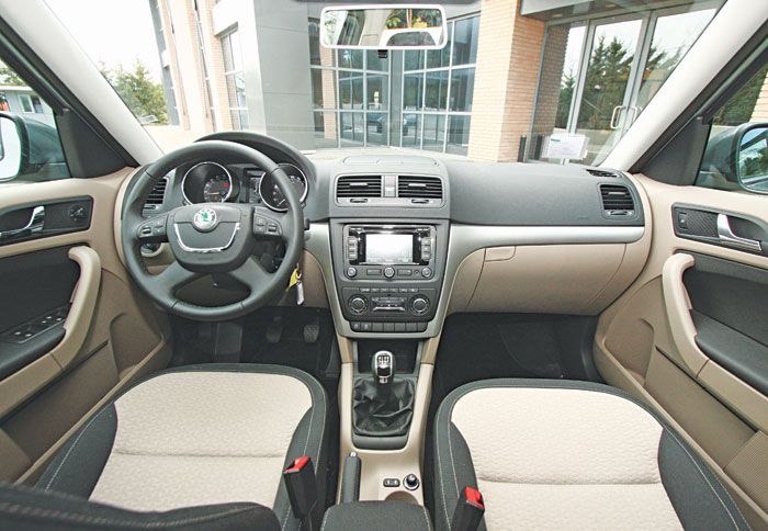 Καμιά αλλαγή στο γνωστό σύγχρονο εσωτερικό του Yeti, που ξεχωρίζει για την πολύ καλή συνολικά εικόνα. Εργονομικά ψεγάδια δεν υπάρχουν, η θέση οδήγησης είναι απροβλημάτιστη, ενώ ποιοτικά, το πάνω μέρος του ταμπλό καλύπτεται από μαλακό υλικό με ευχάριστη υφή. Ακόμα όμως και τα πιο σκληρά πλαστικά ικανοποιούν με το φινίρισμά τους, όπως ισχύει αντίστοιχα και με τη συναρμολόγηση.